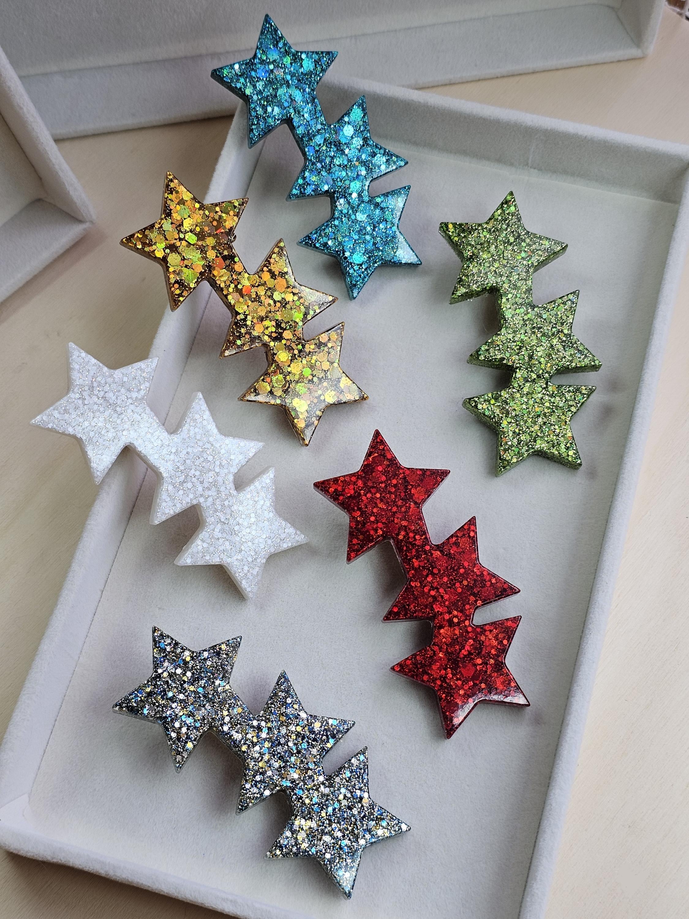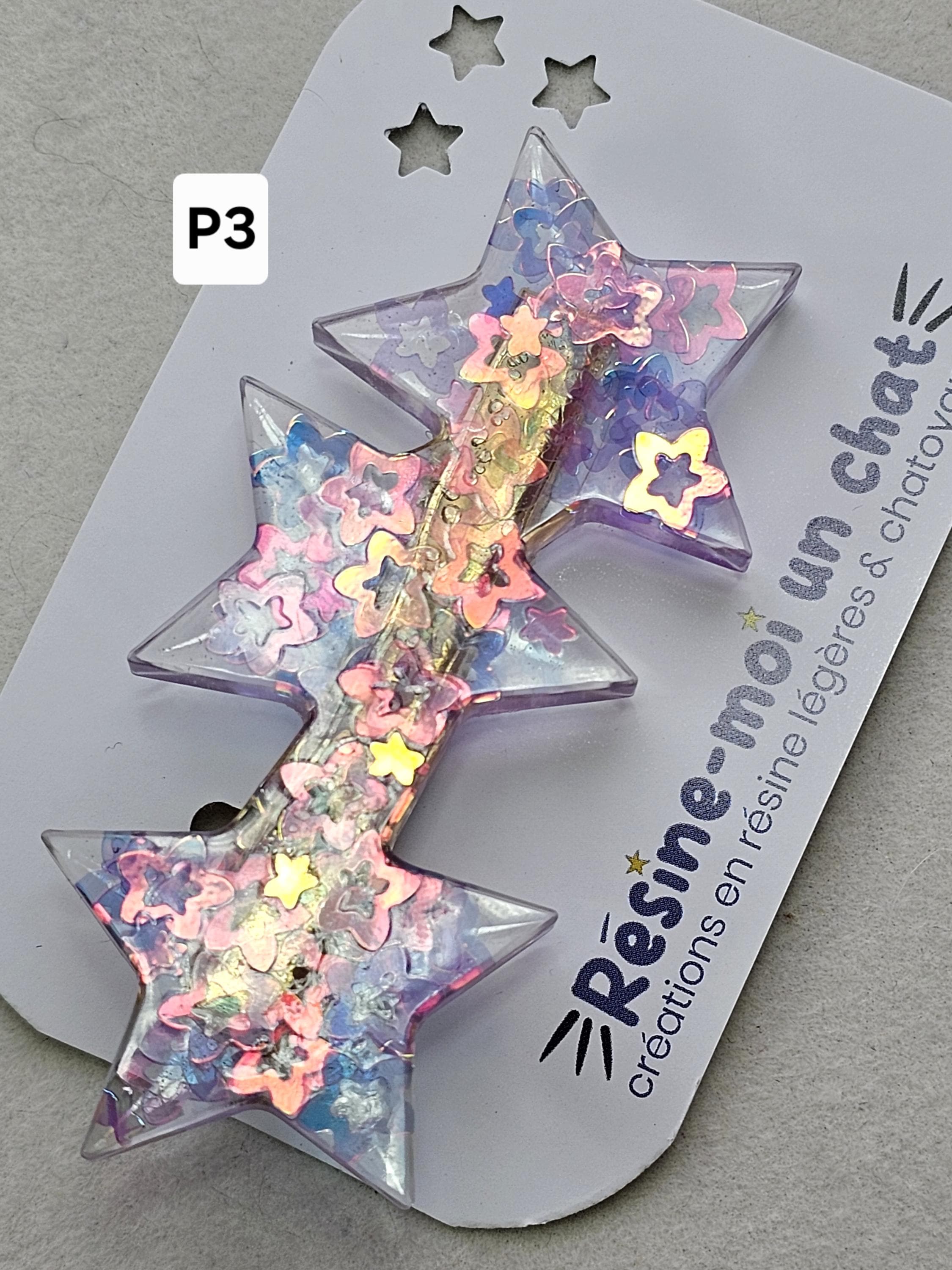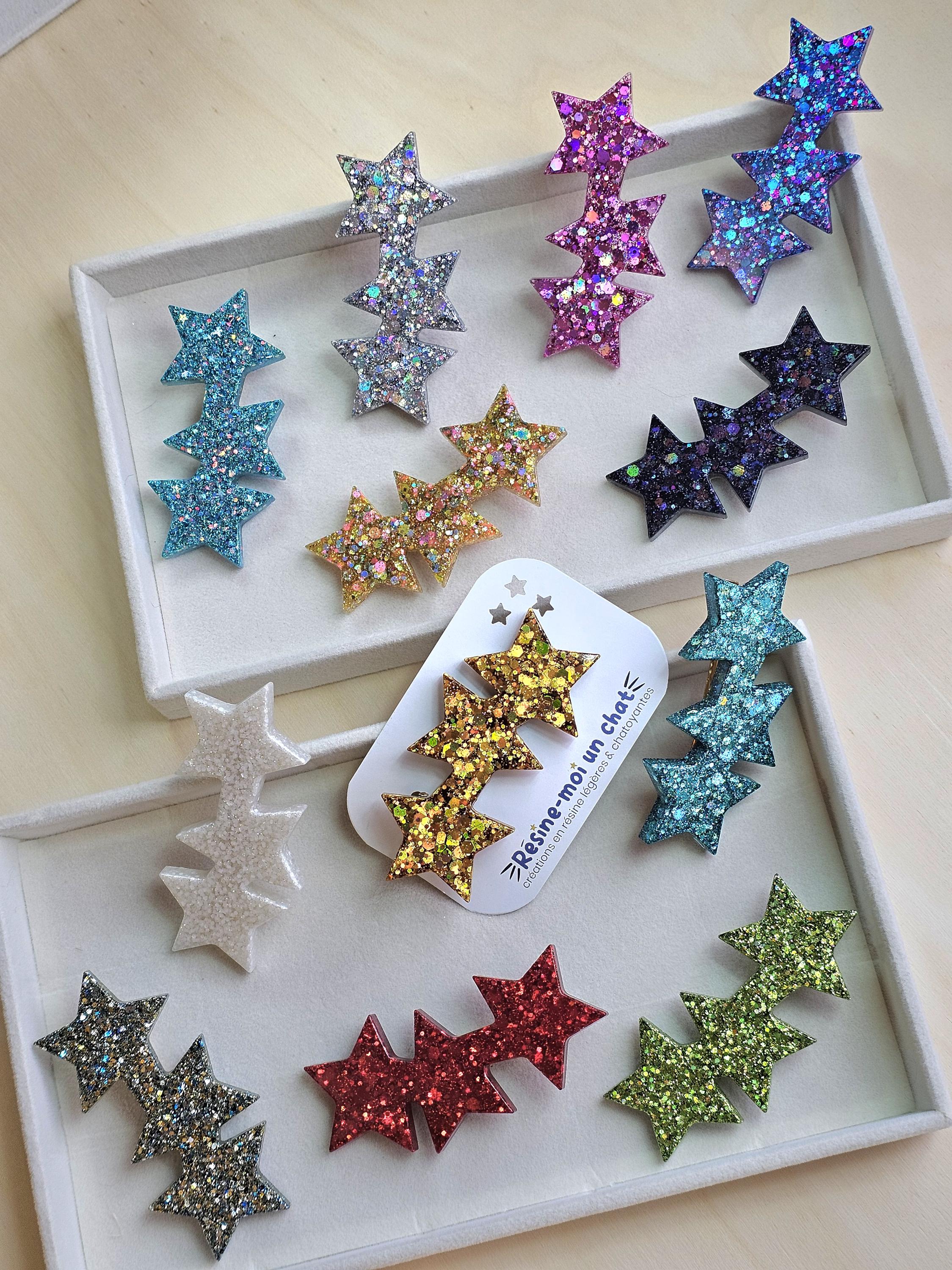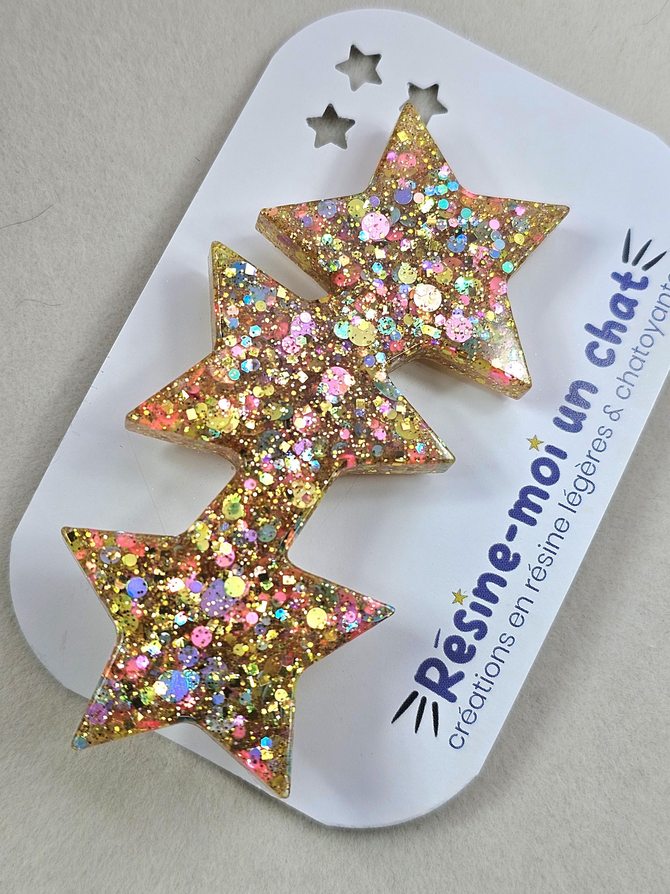 ⭐️ Barrette en résine pailletée 3 étoiles, une création originale signée Résine-Moi Un Chat.