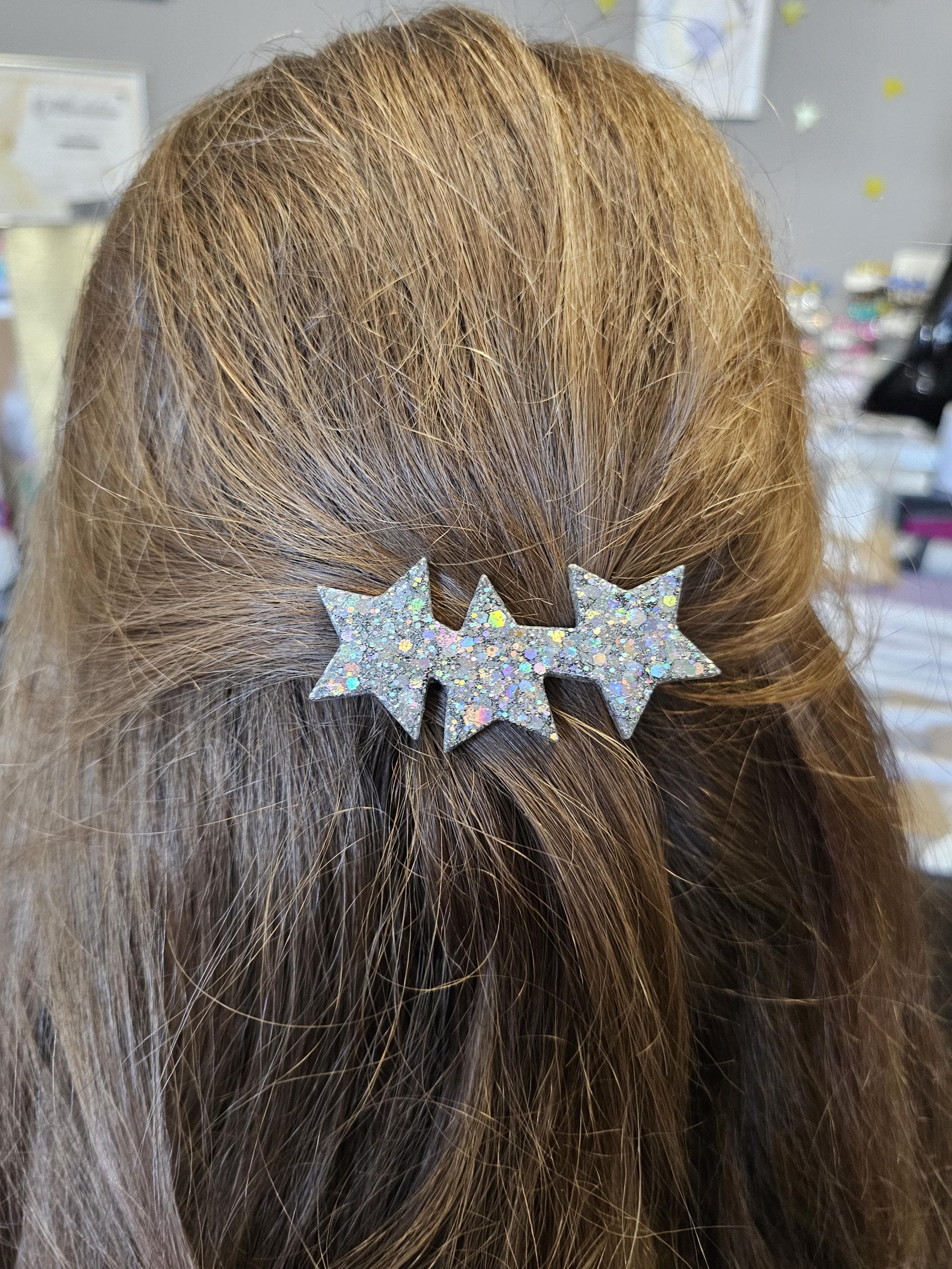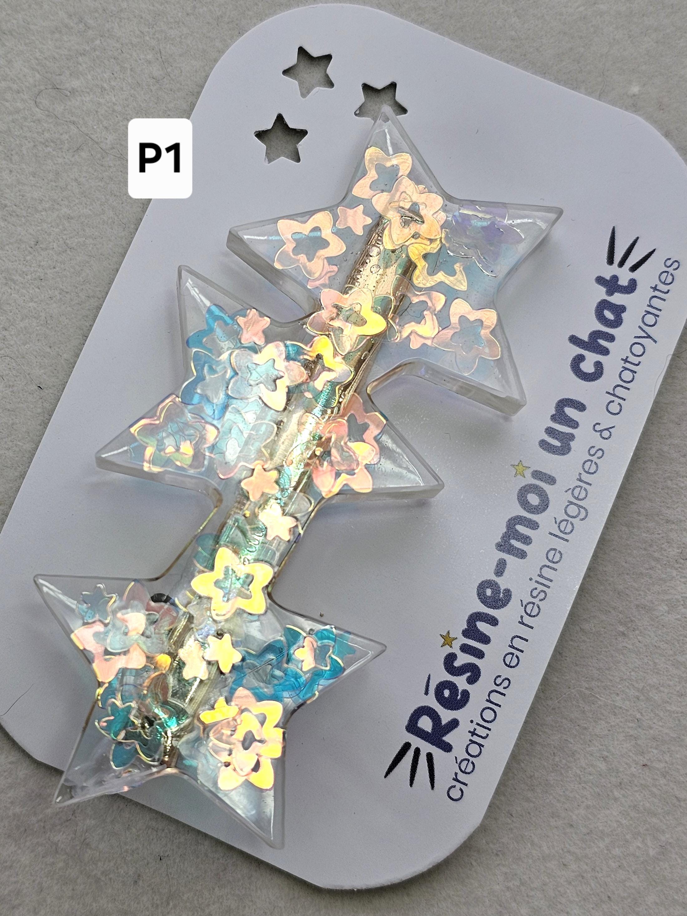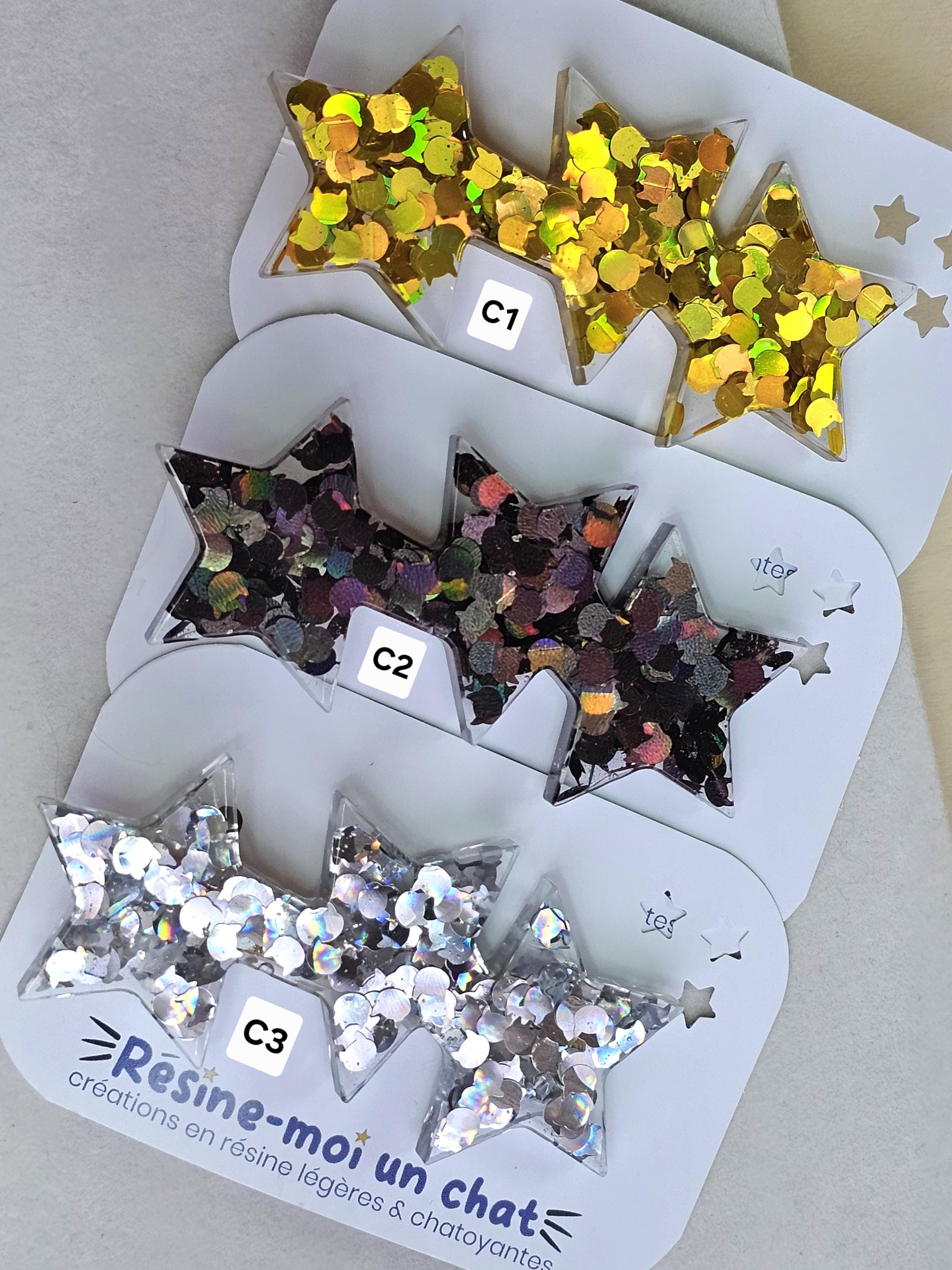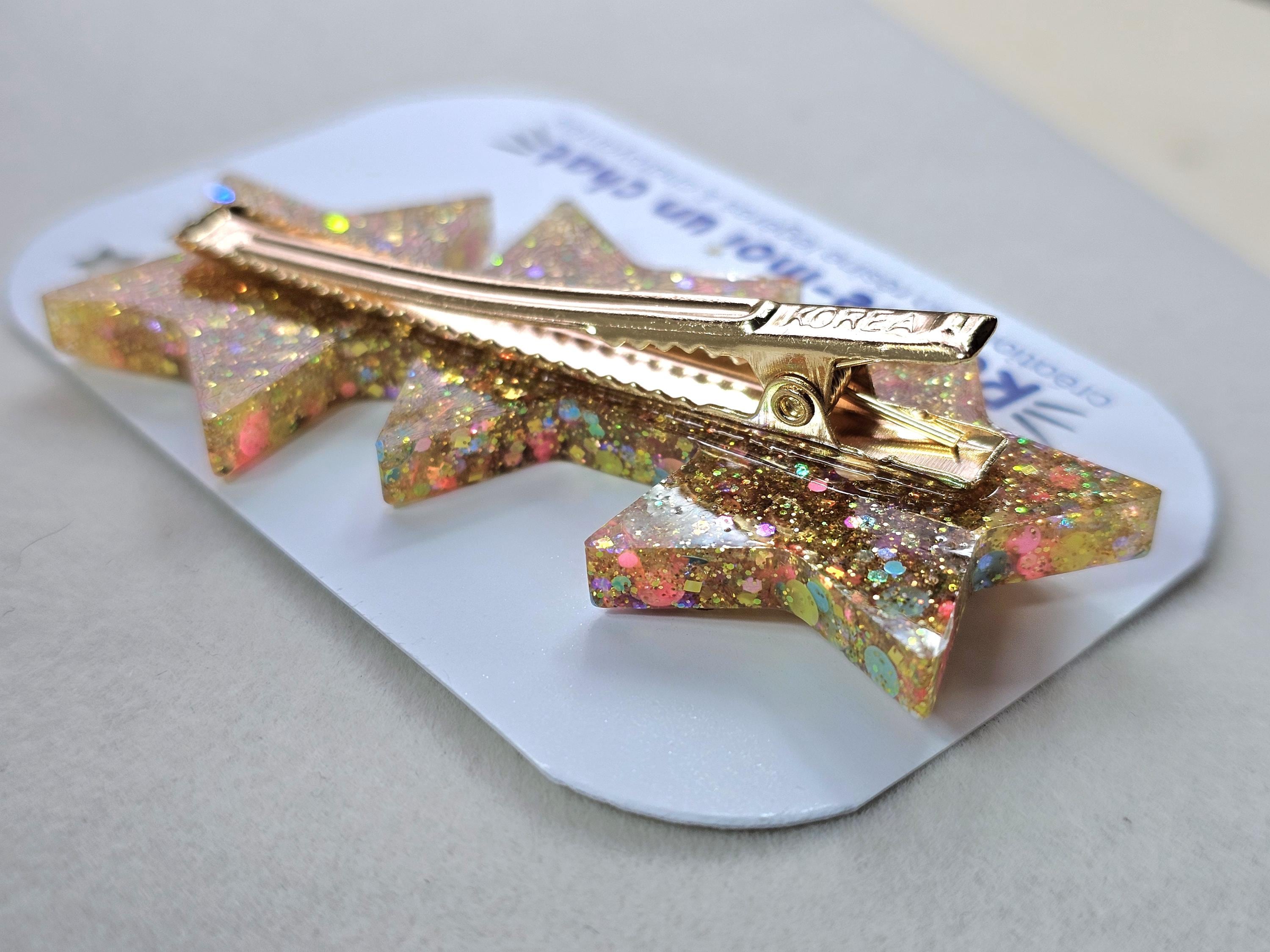 ⭐️ Barrette en résine pailletée 3 étoiles, une création originale signée Résine-Moi Un Chat.