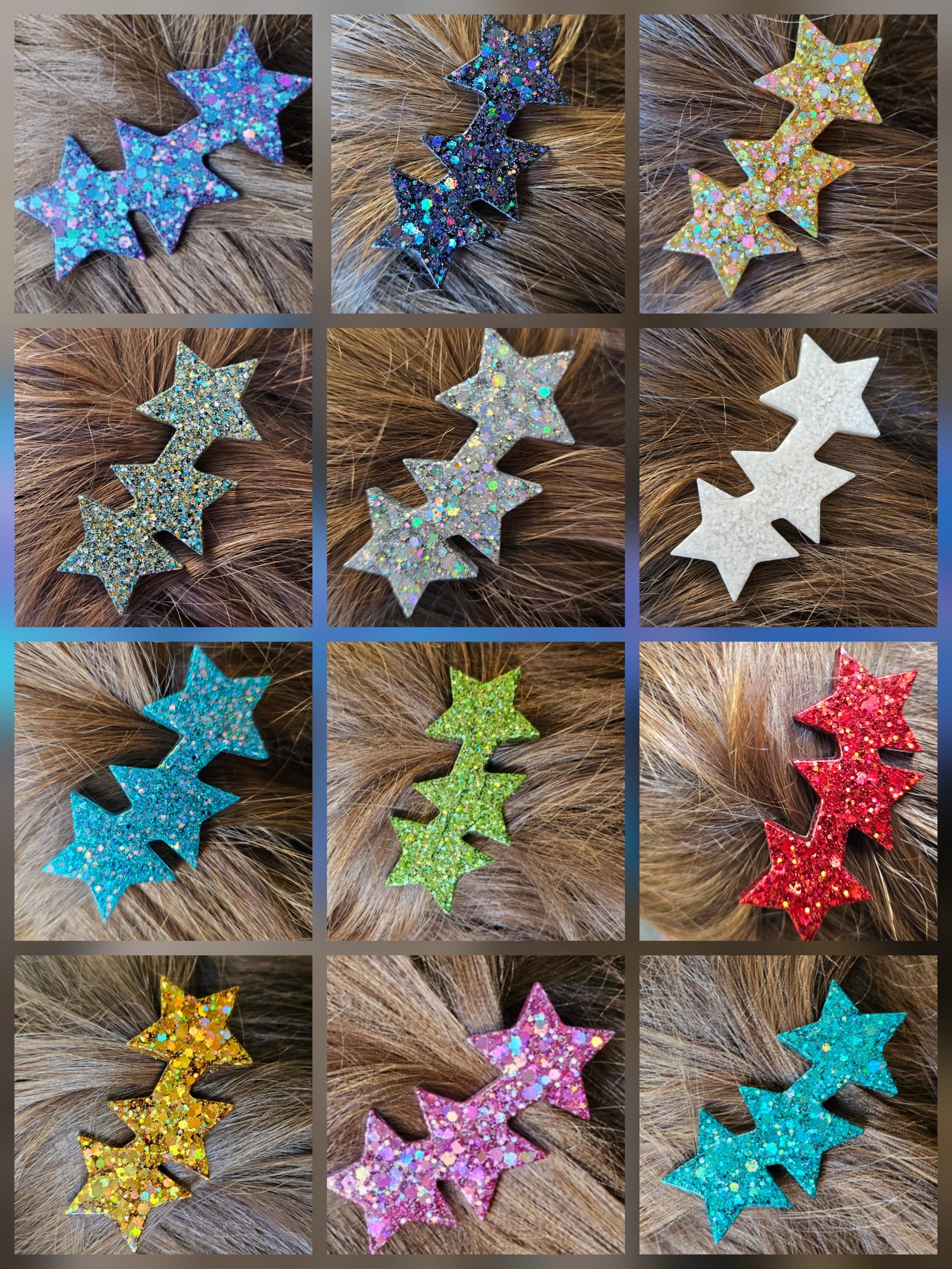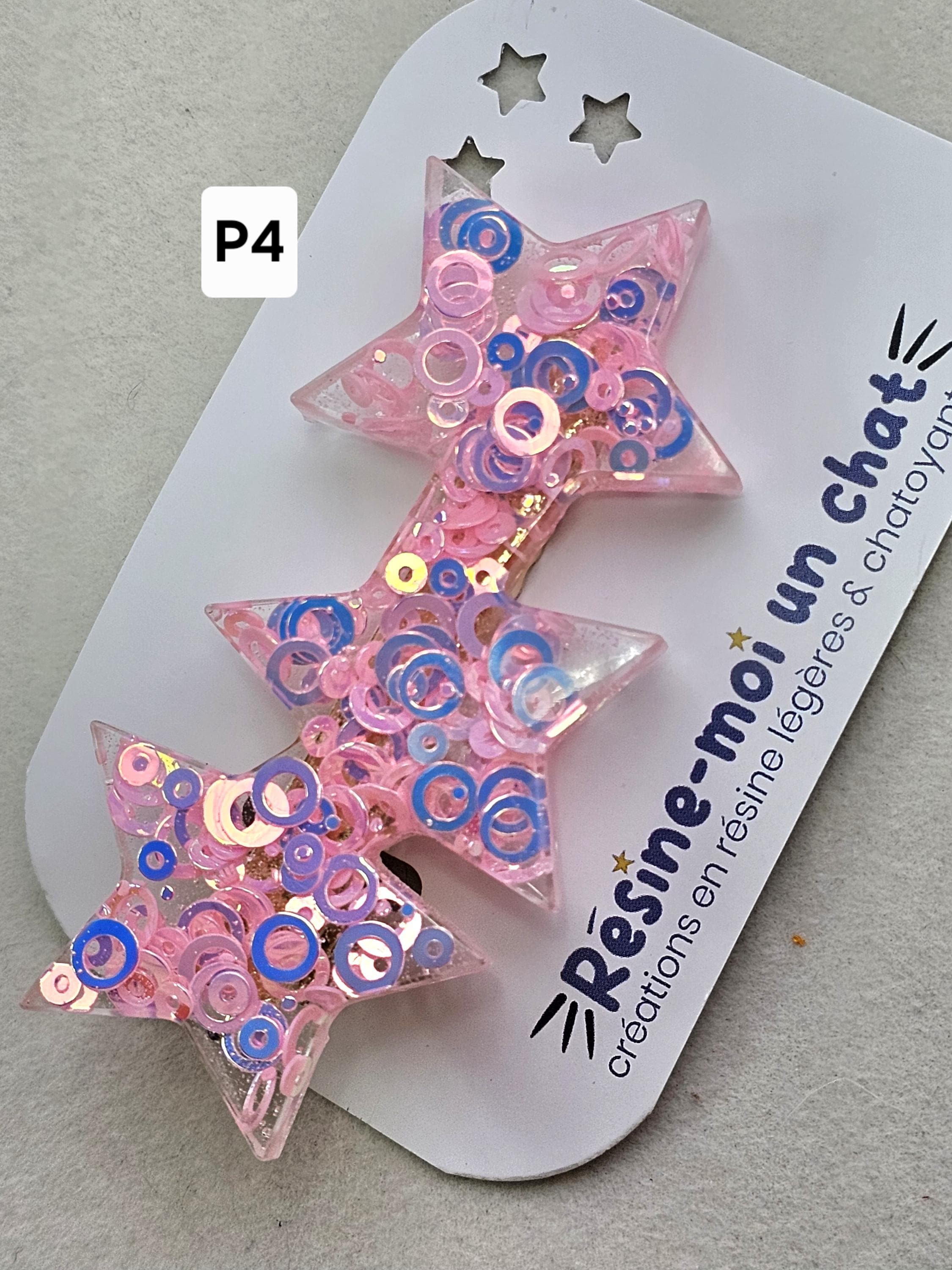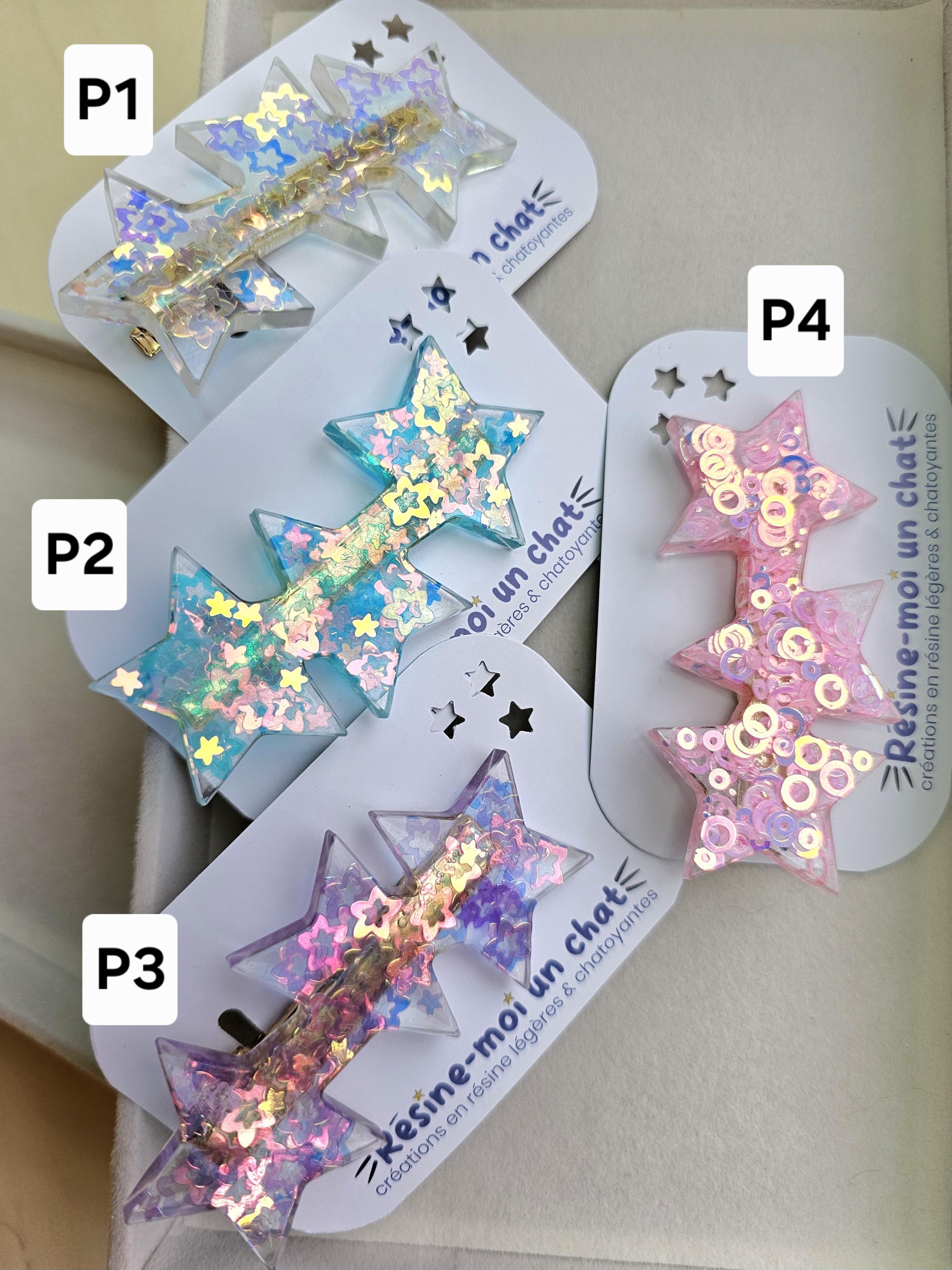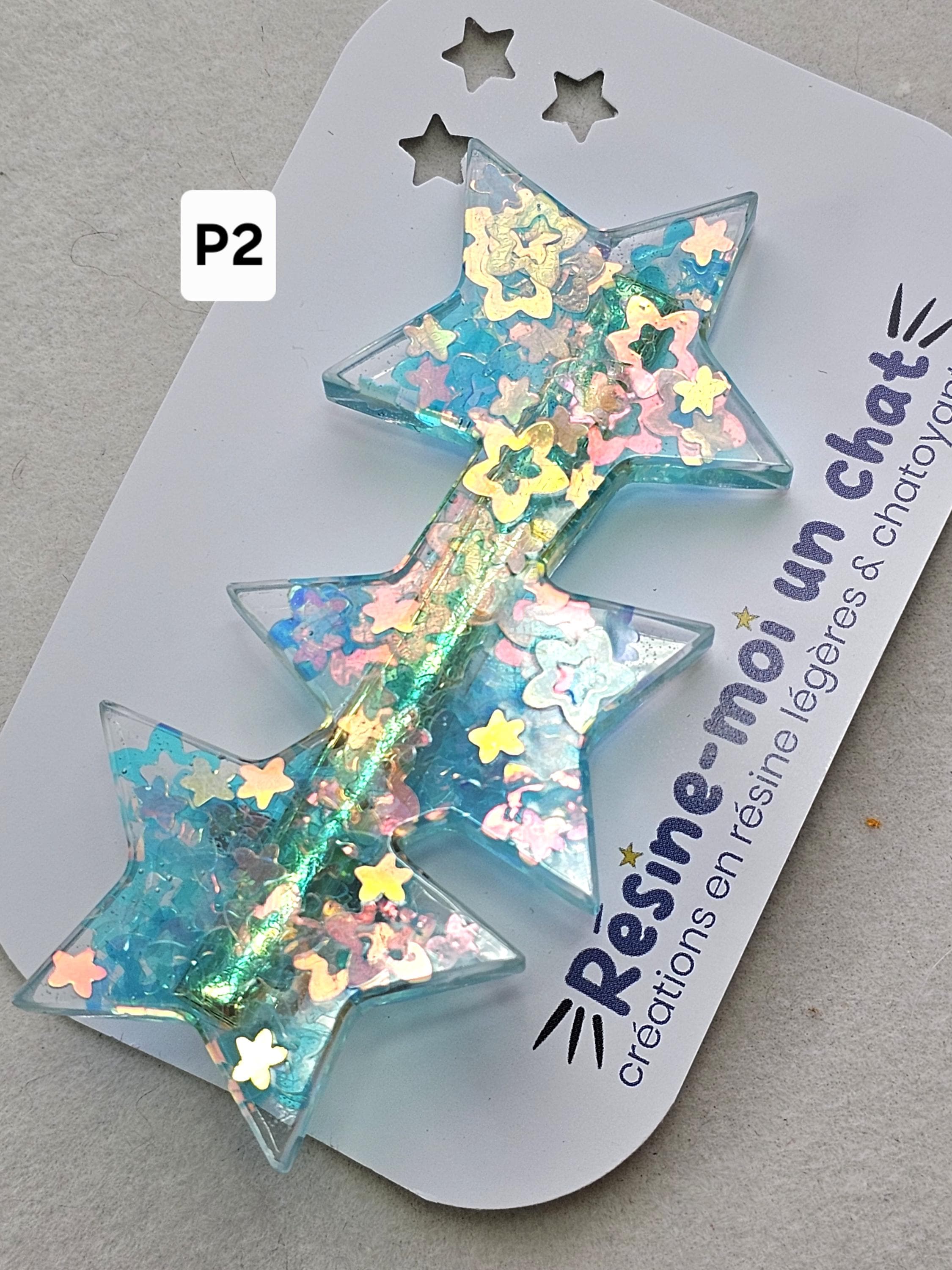 ⭐️ Barrette en résine pailletée 3 étoiles, une création originale signée Résine-Moi Un Chat.