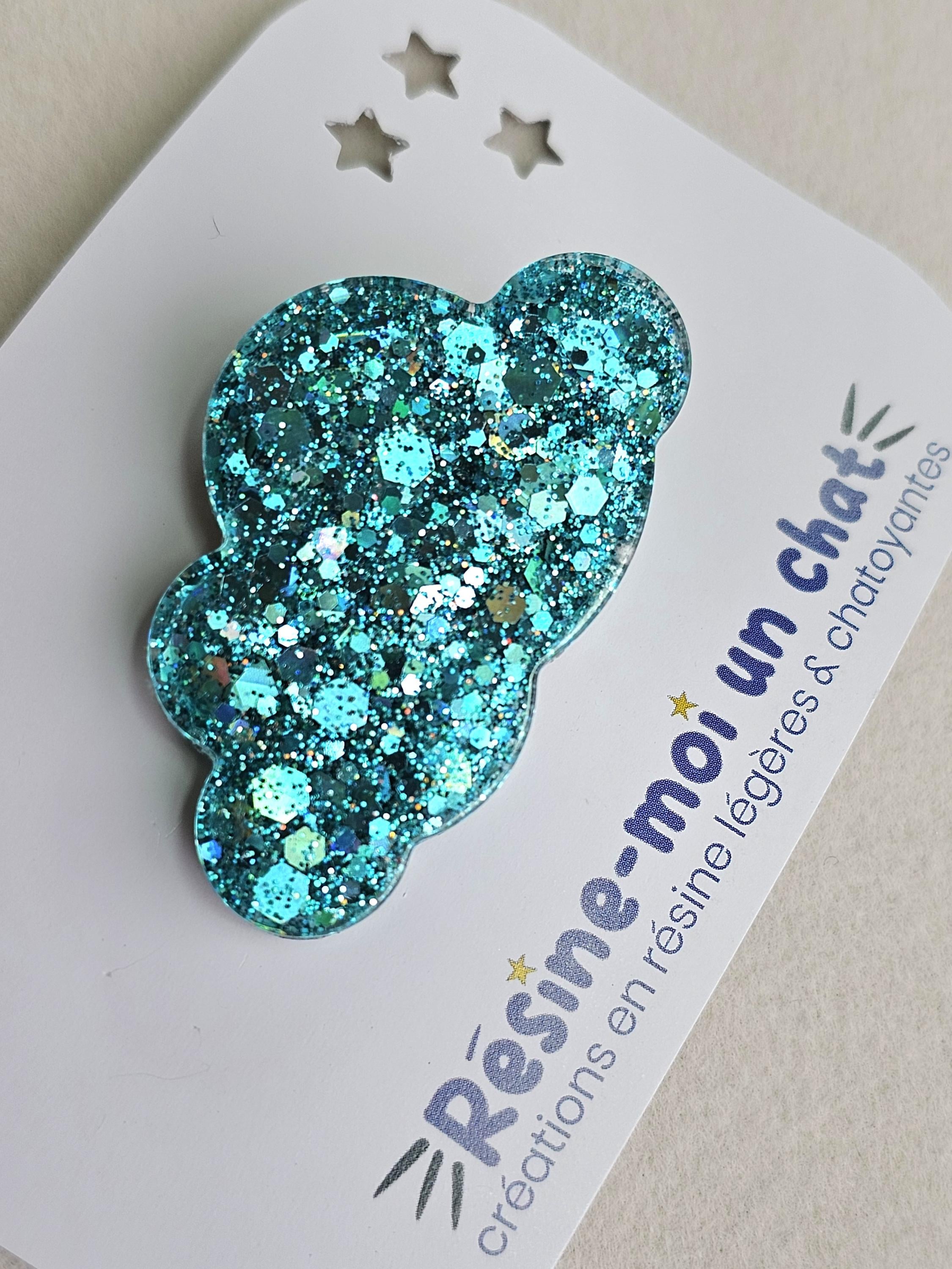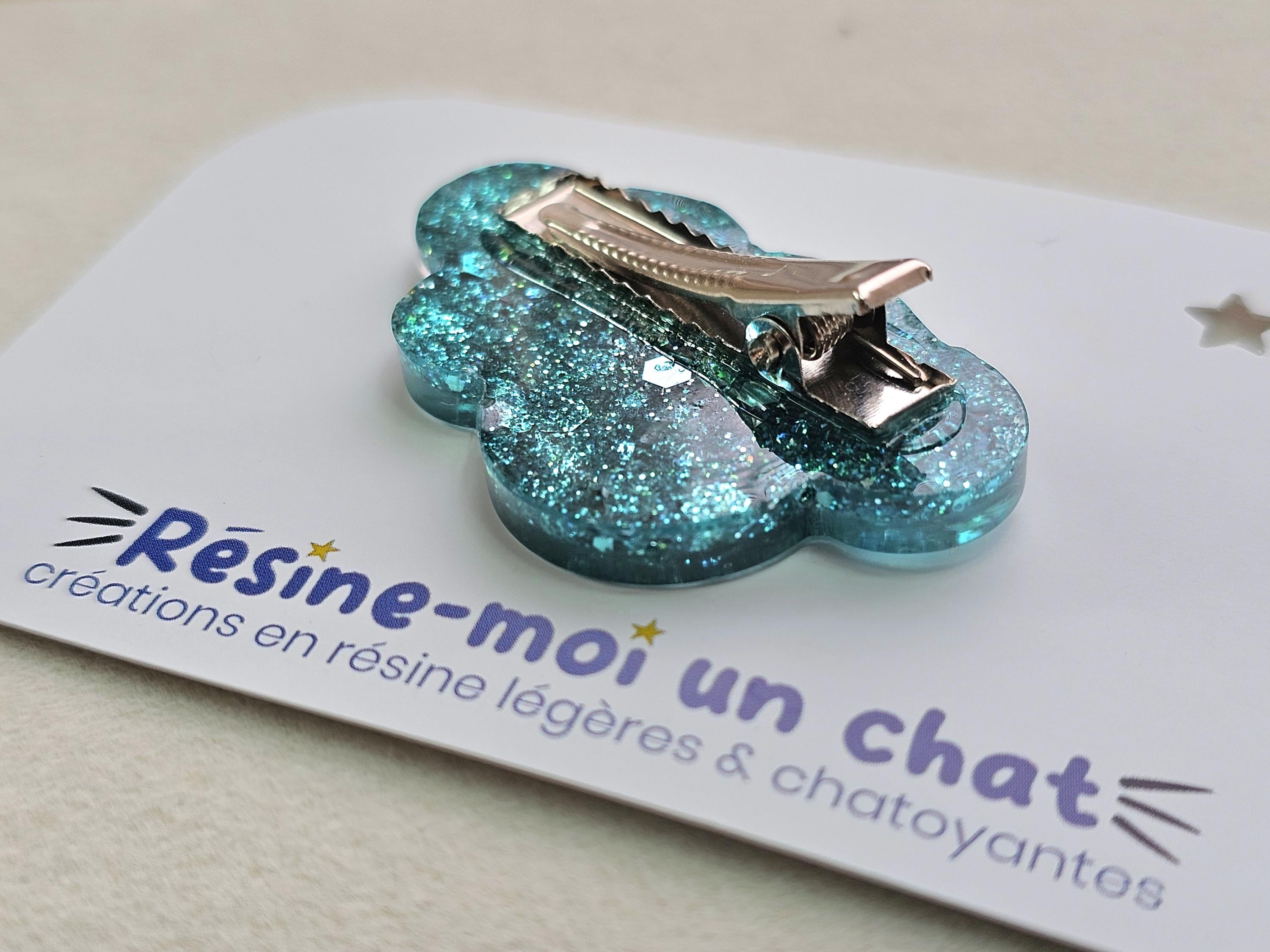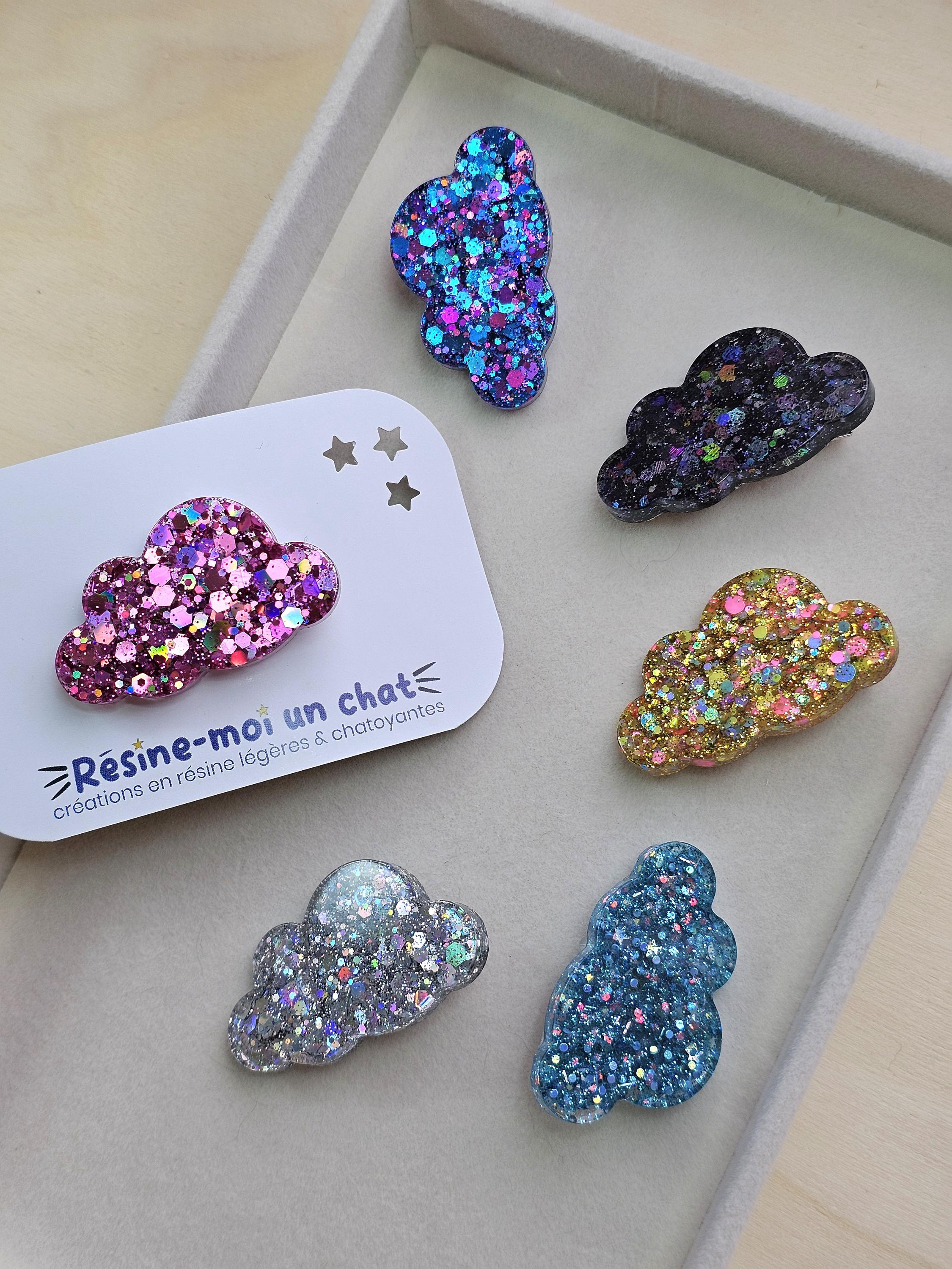 ️ Barrette en résine pailletée en forme de nuage signée Résine-Moi Un Chat.