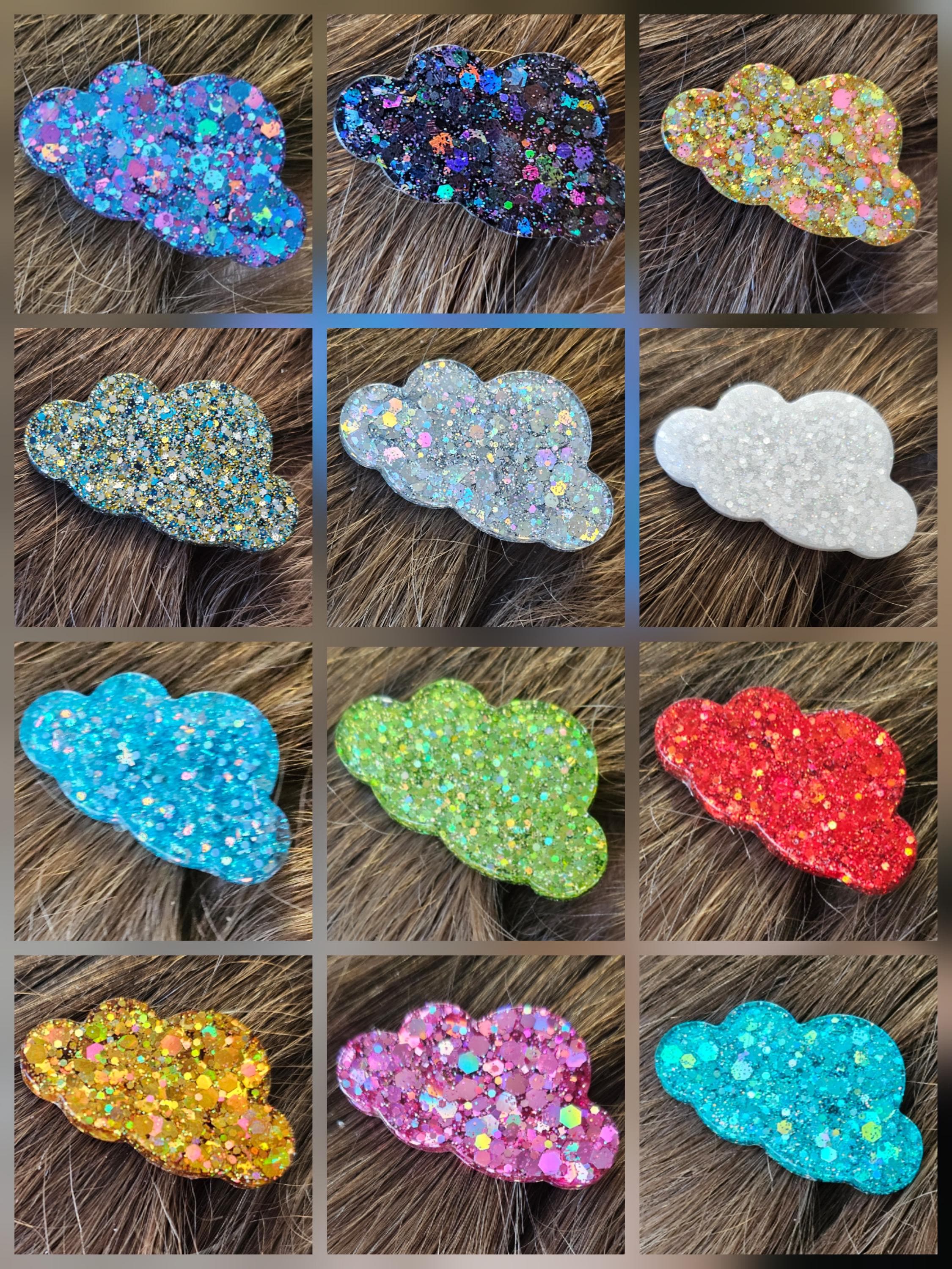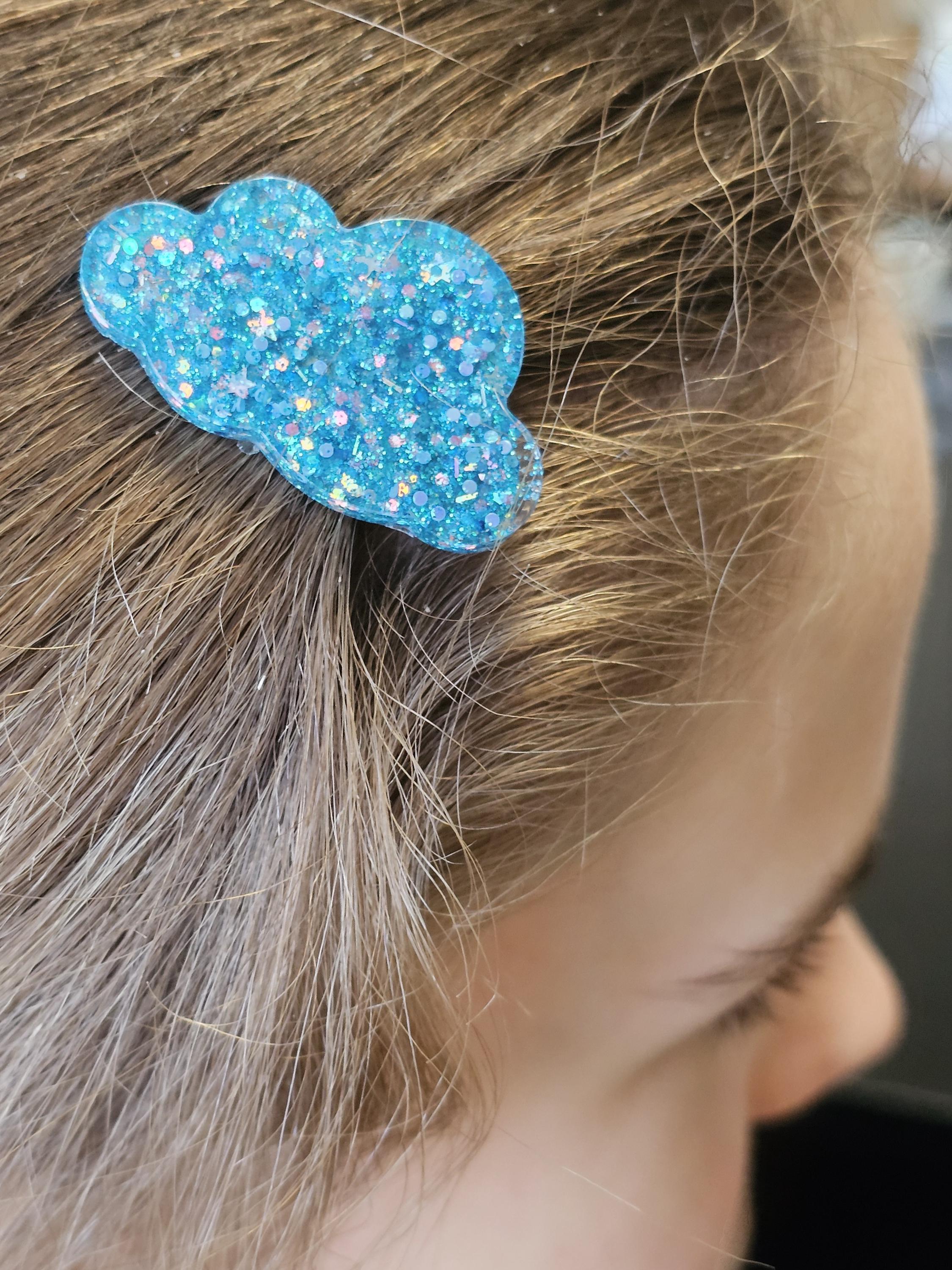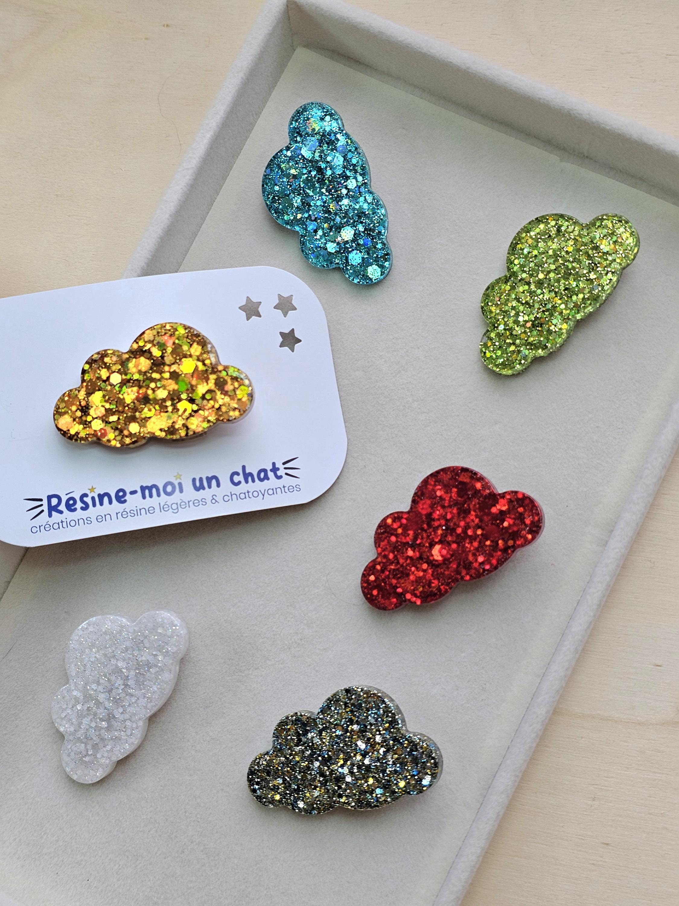 ️ Barrette en résine pailletée en forme de nuage signée Résine-Moi Un Chat.