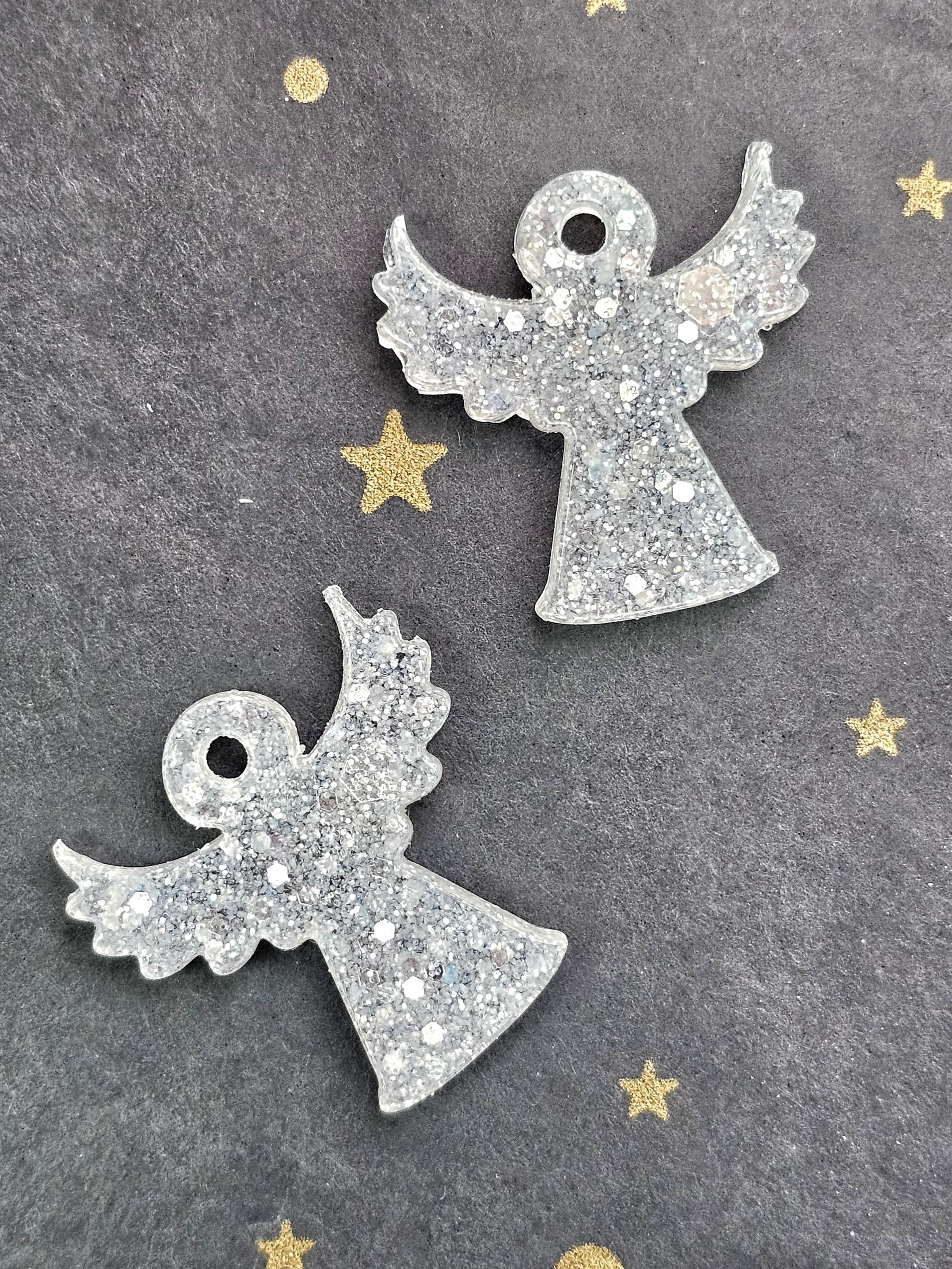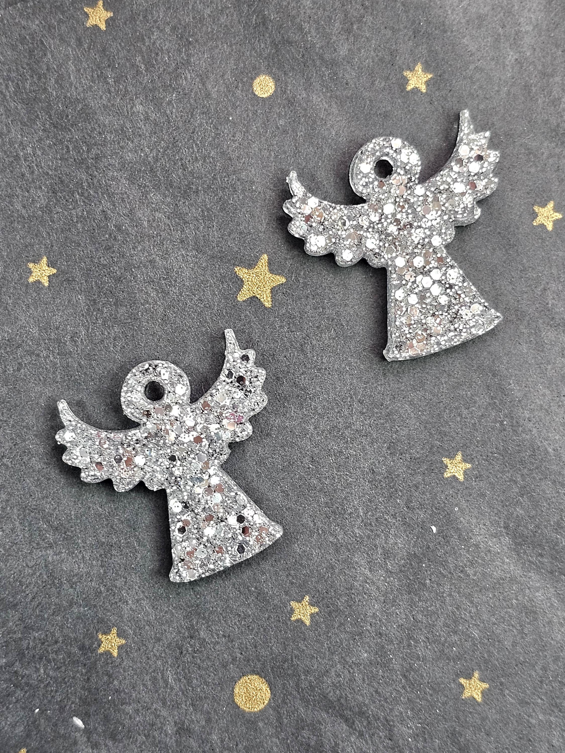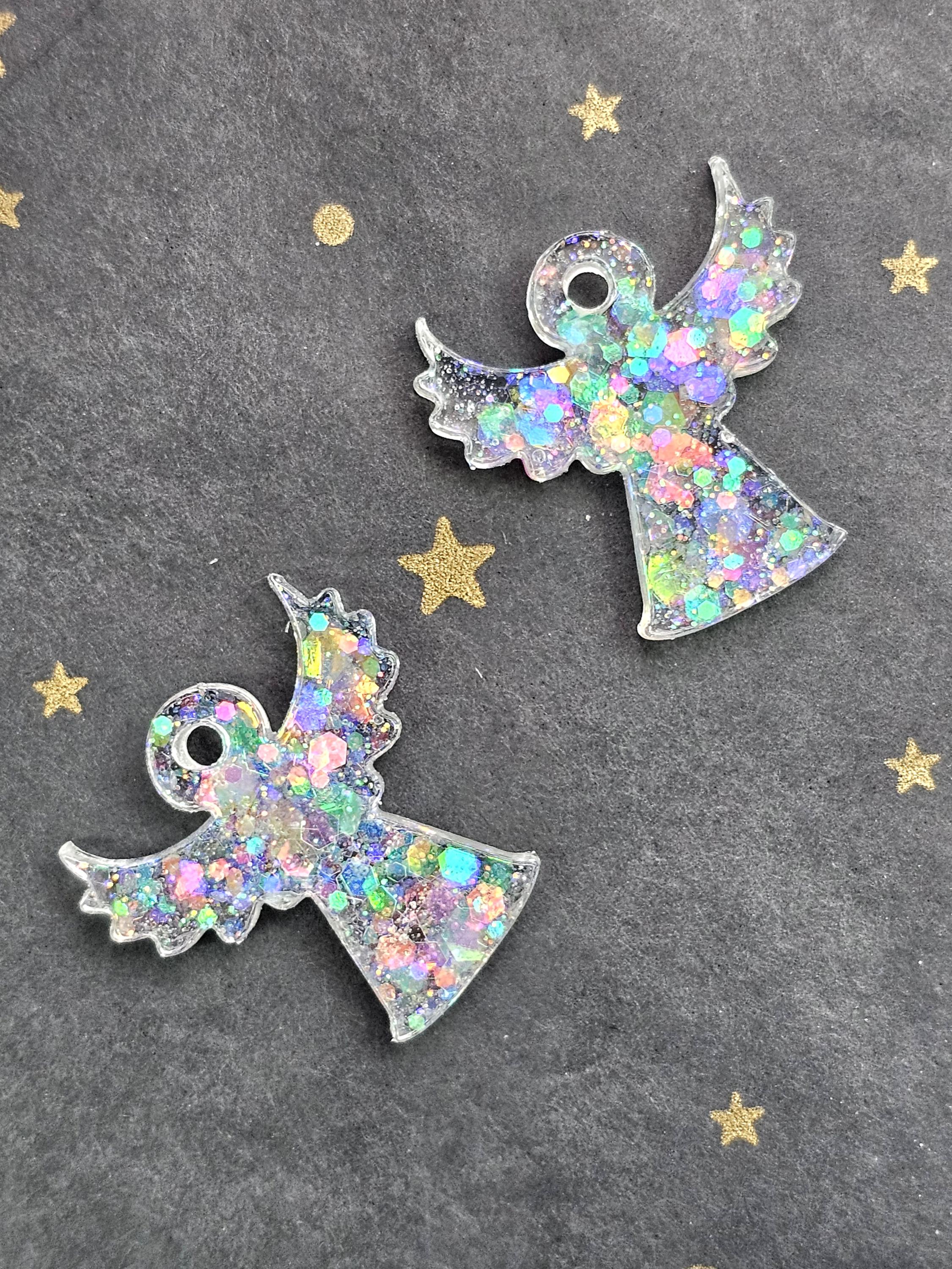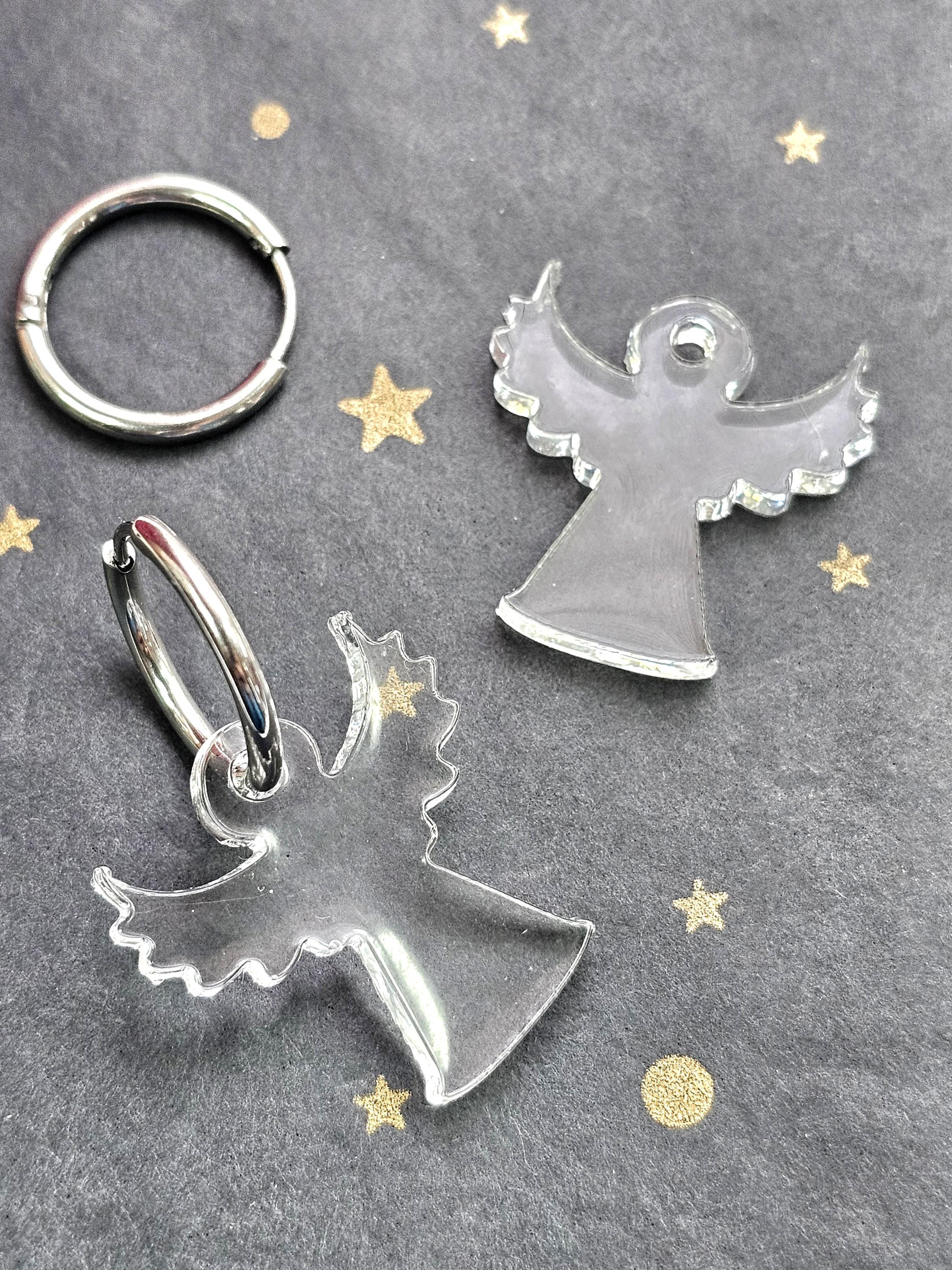 Boucles créoles en acier inoxydable hypoallergénique. Pampille ange gardien en résine & paillettes – Création artisanale Résine-moi Un Chat