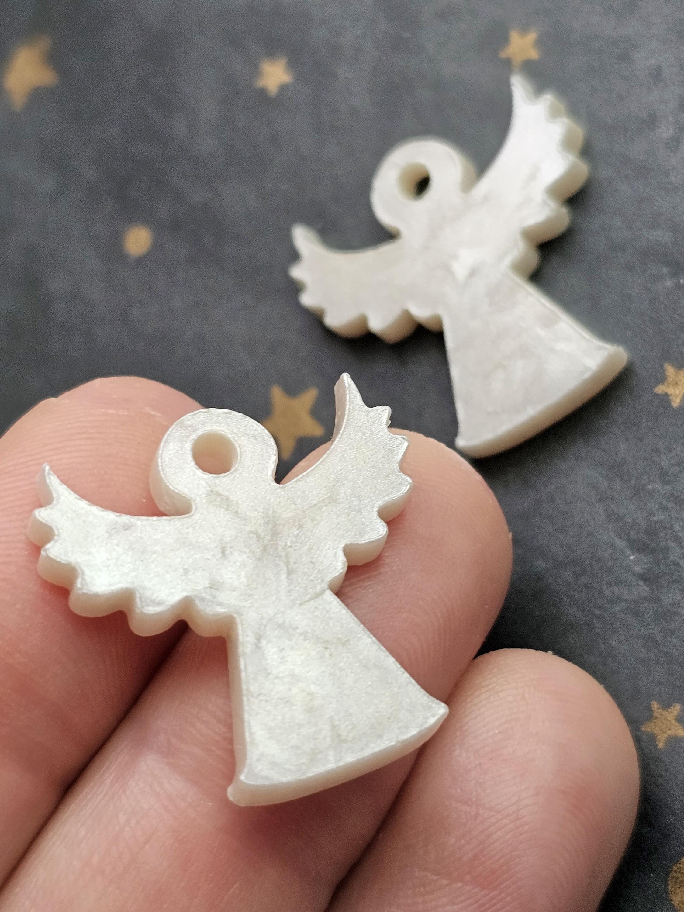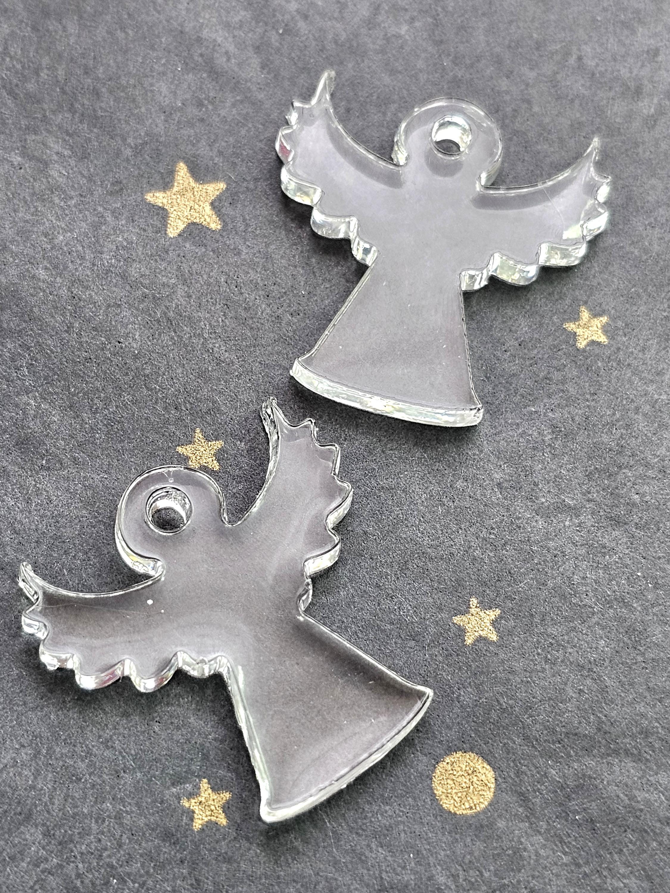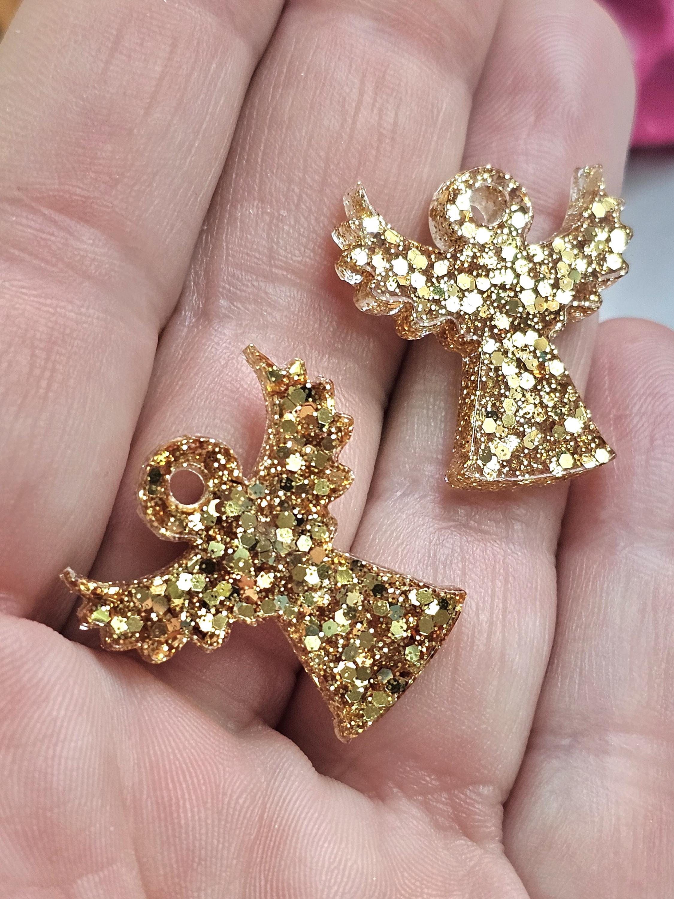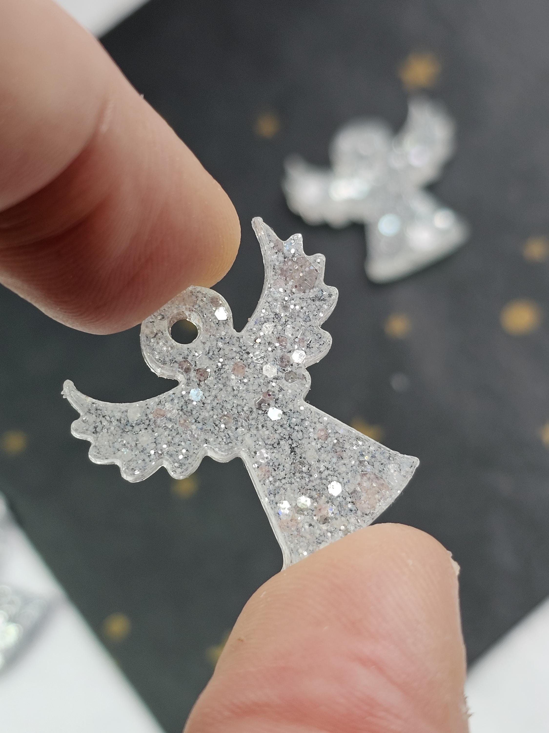 Boucles créoles en acier inoxydable hypoallergénique. Pampille ange gardien en résine & paillettes – Création artisanale Résine-moi Un Chat