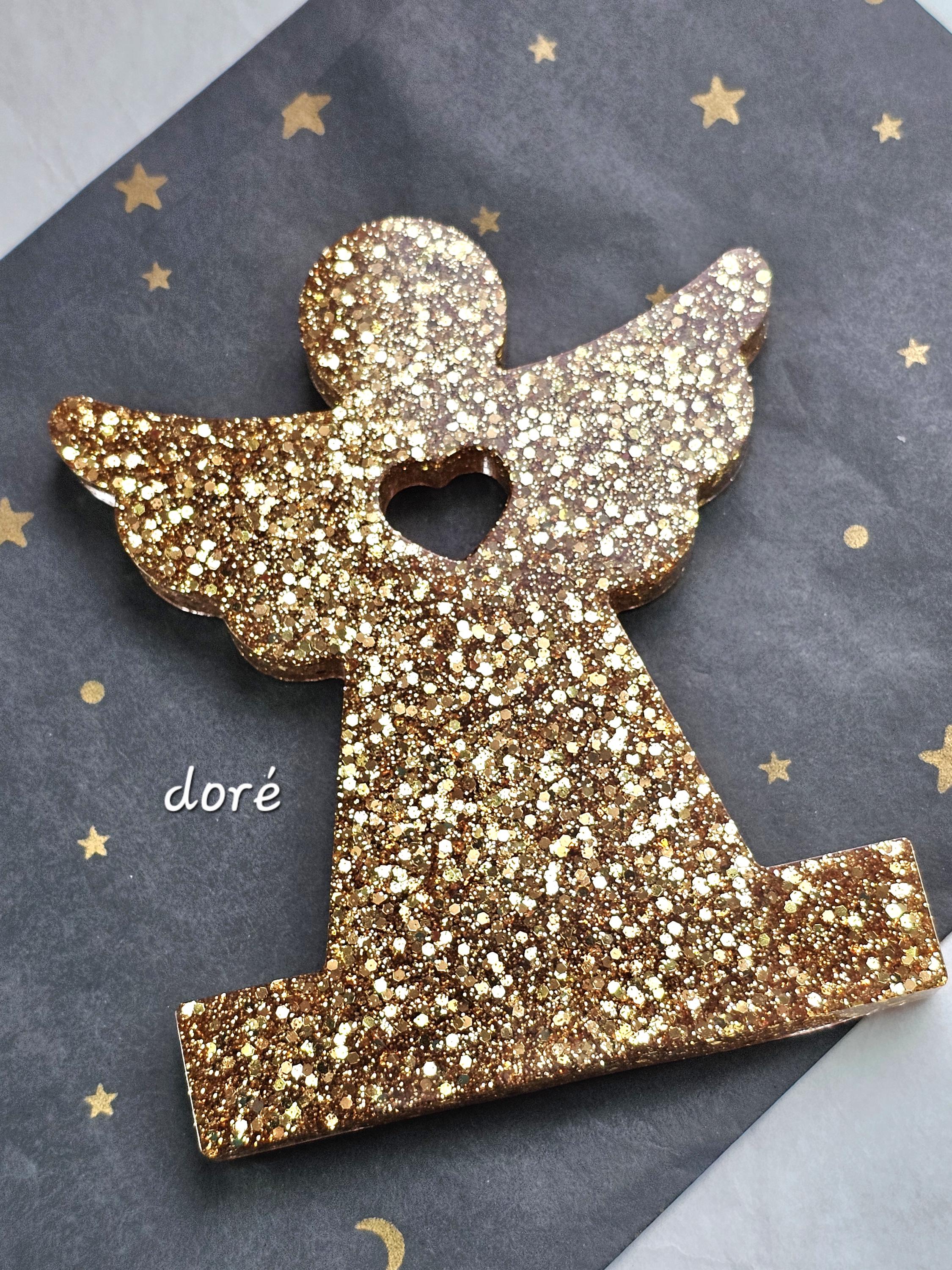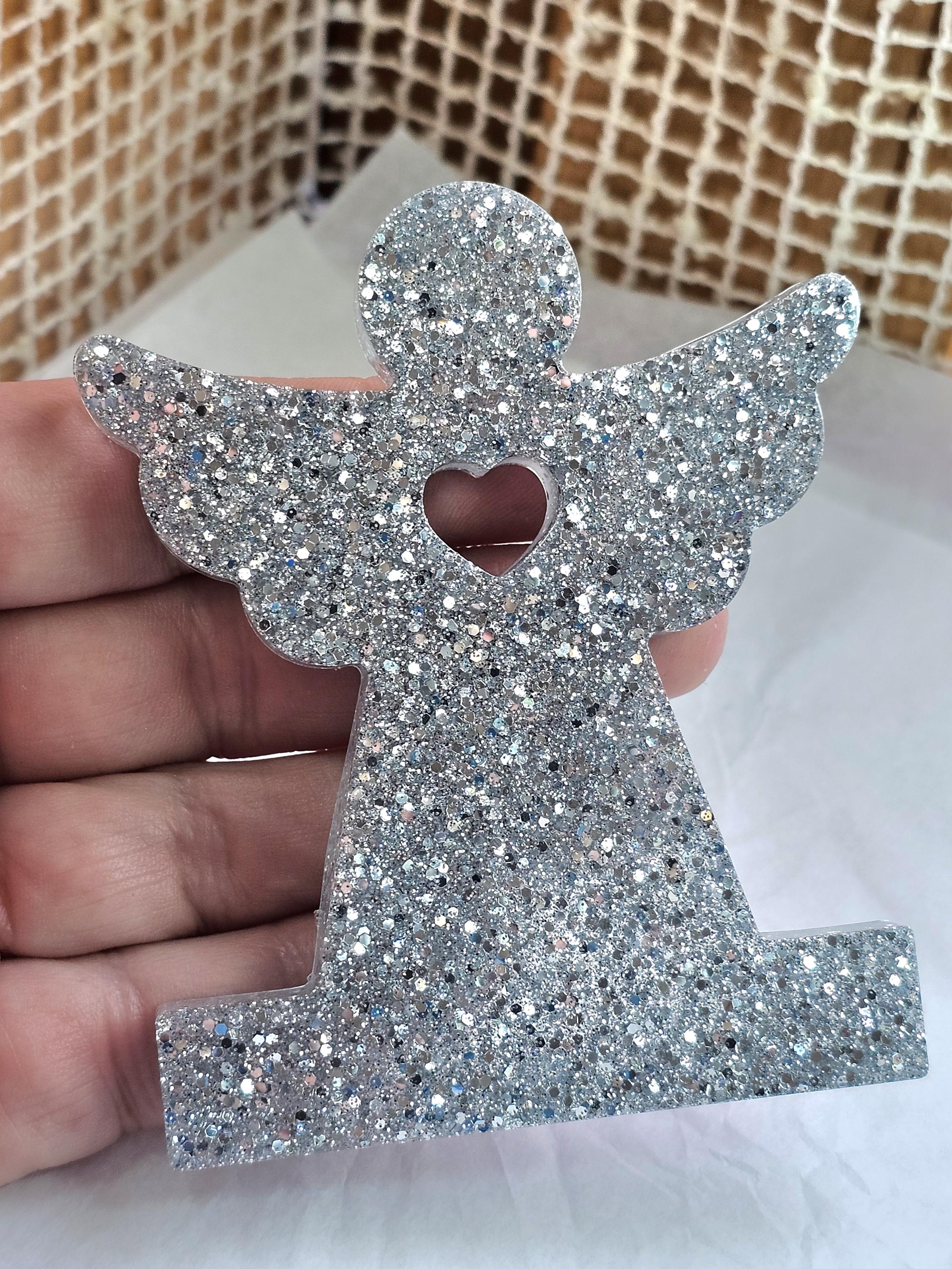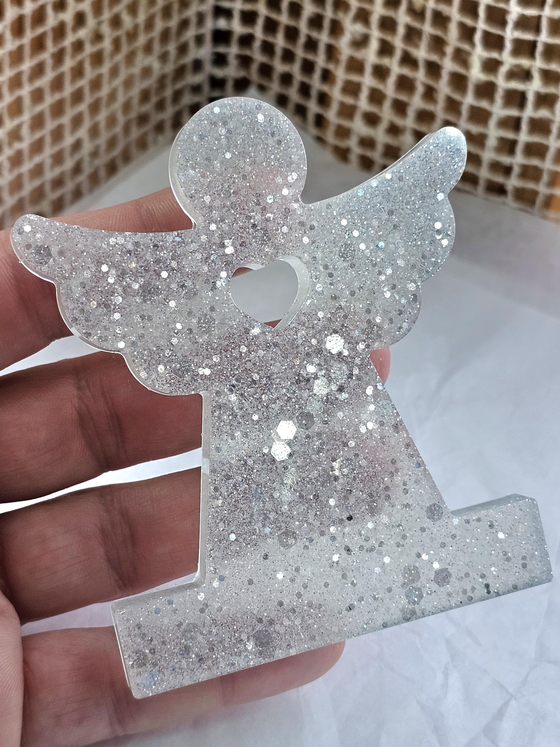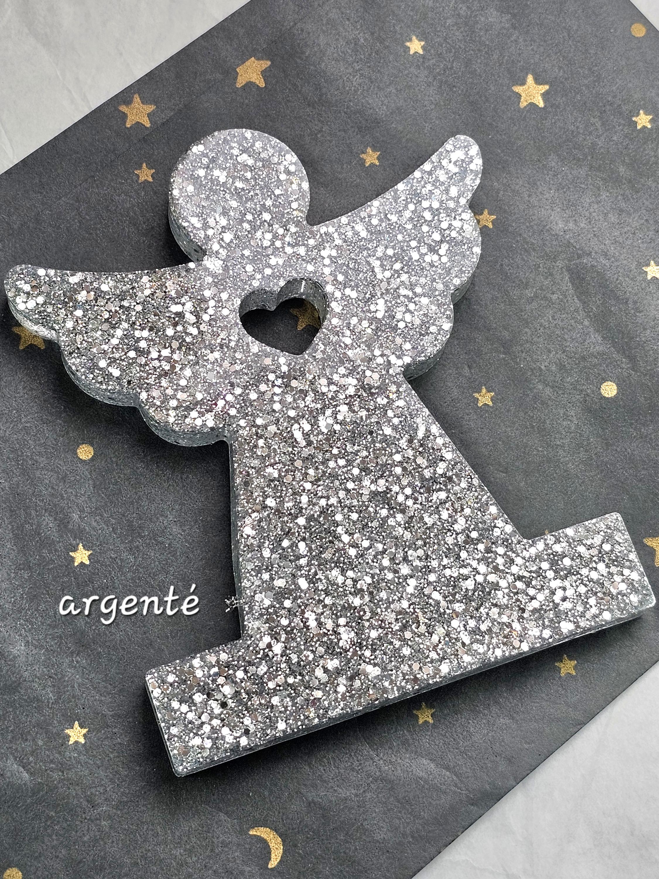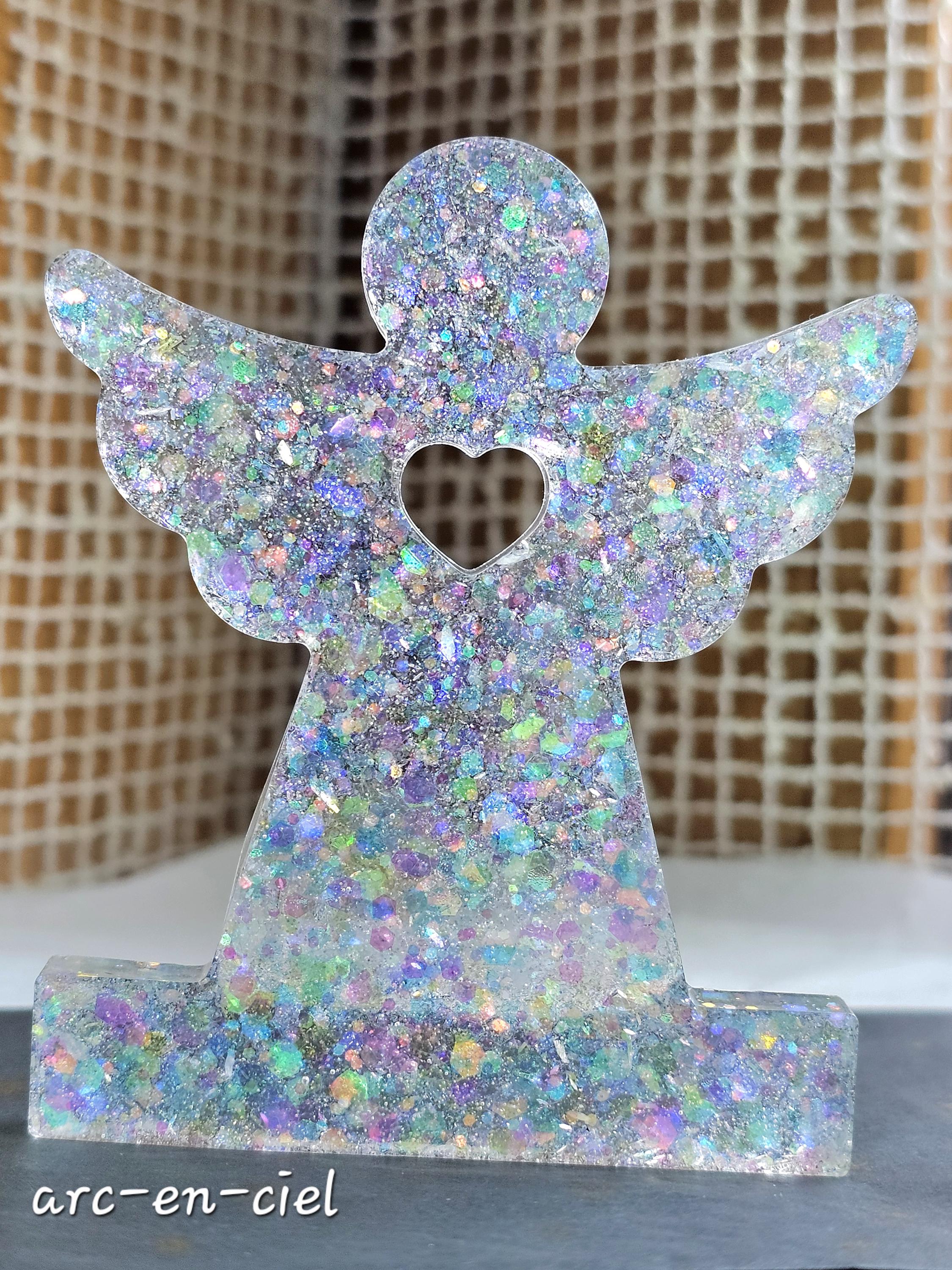Statuette décorative ange gardien coeur en résine & paillettes. Cadeau unique original – Création artisanale et lumineuse Résine-moi Un Chat