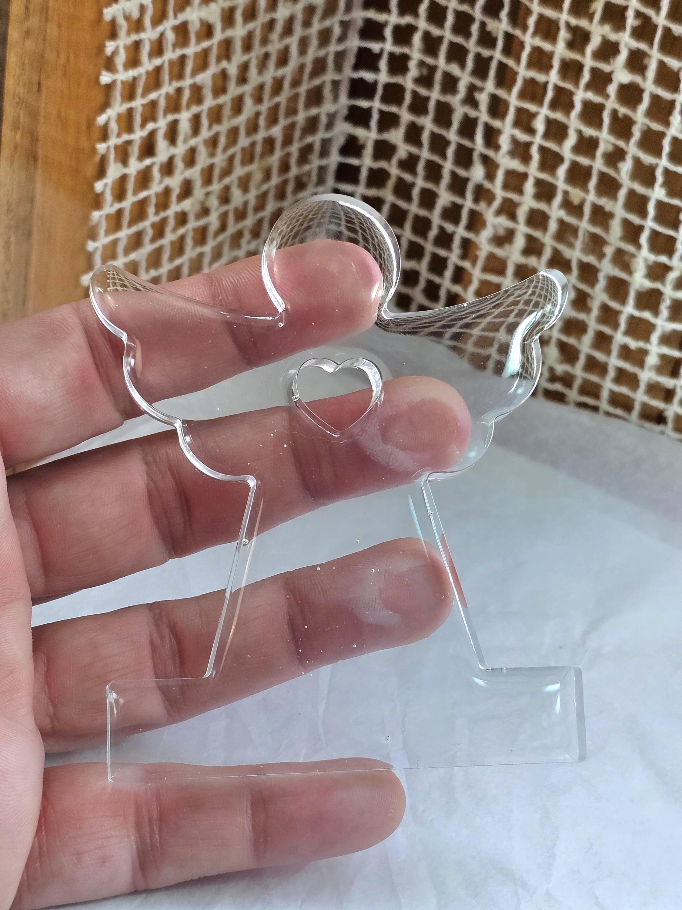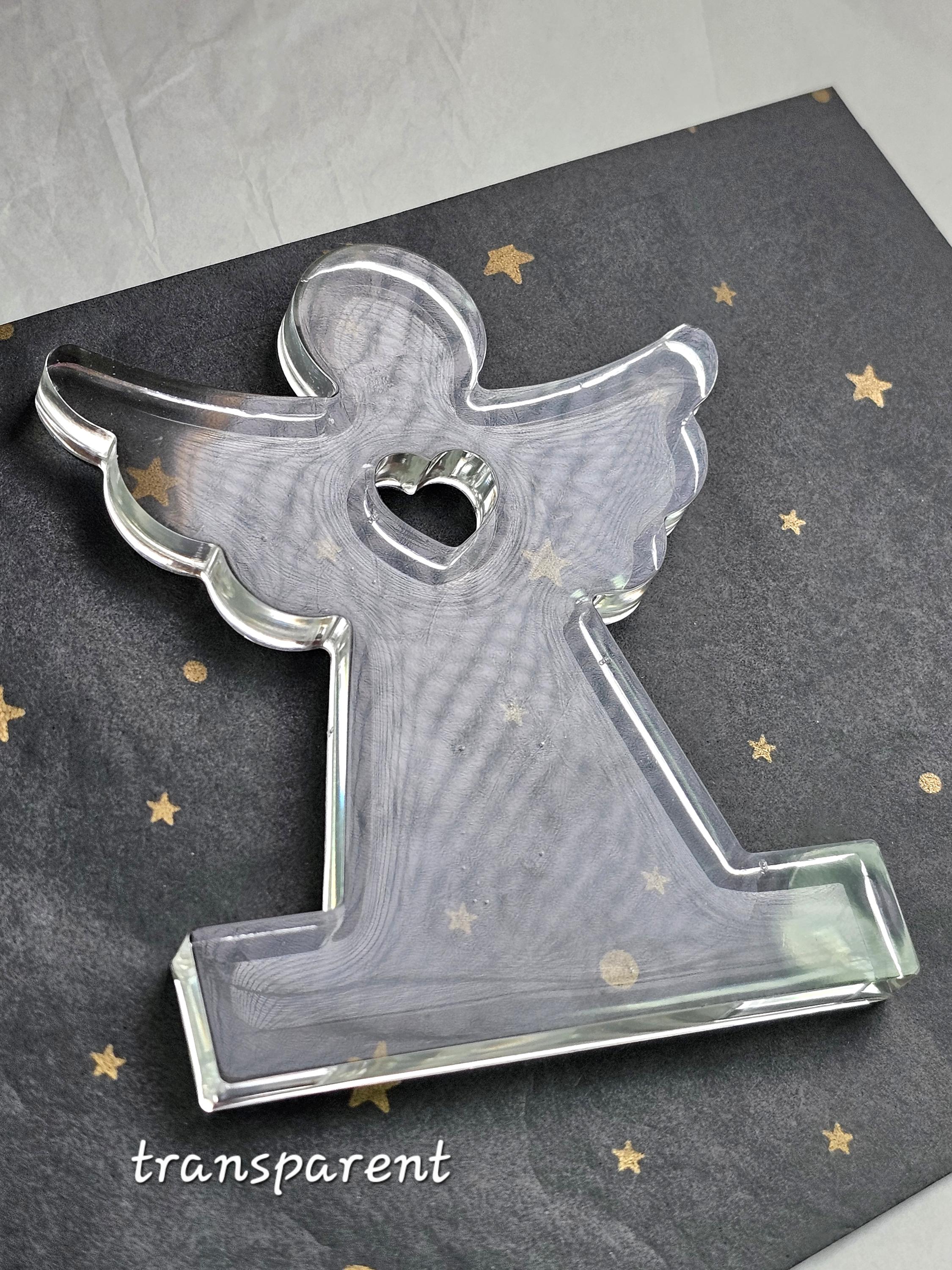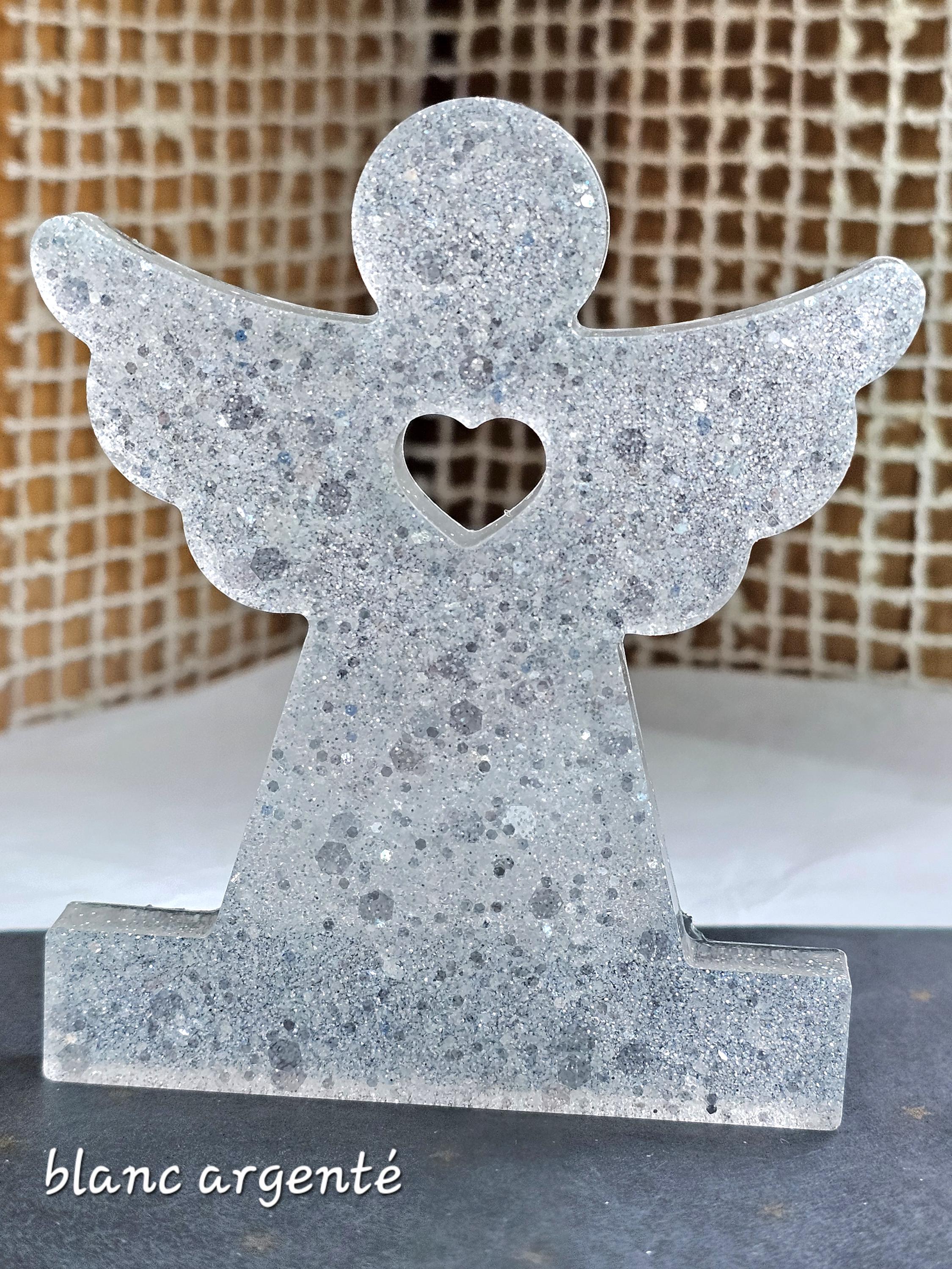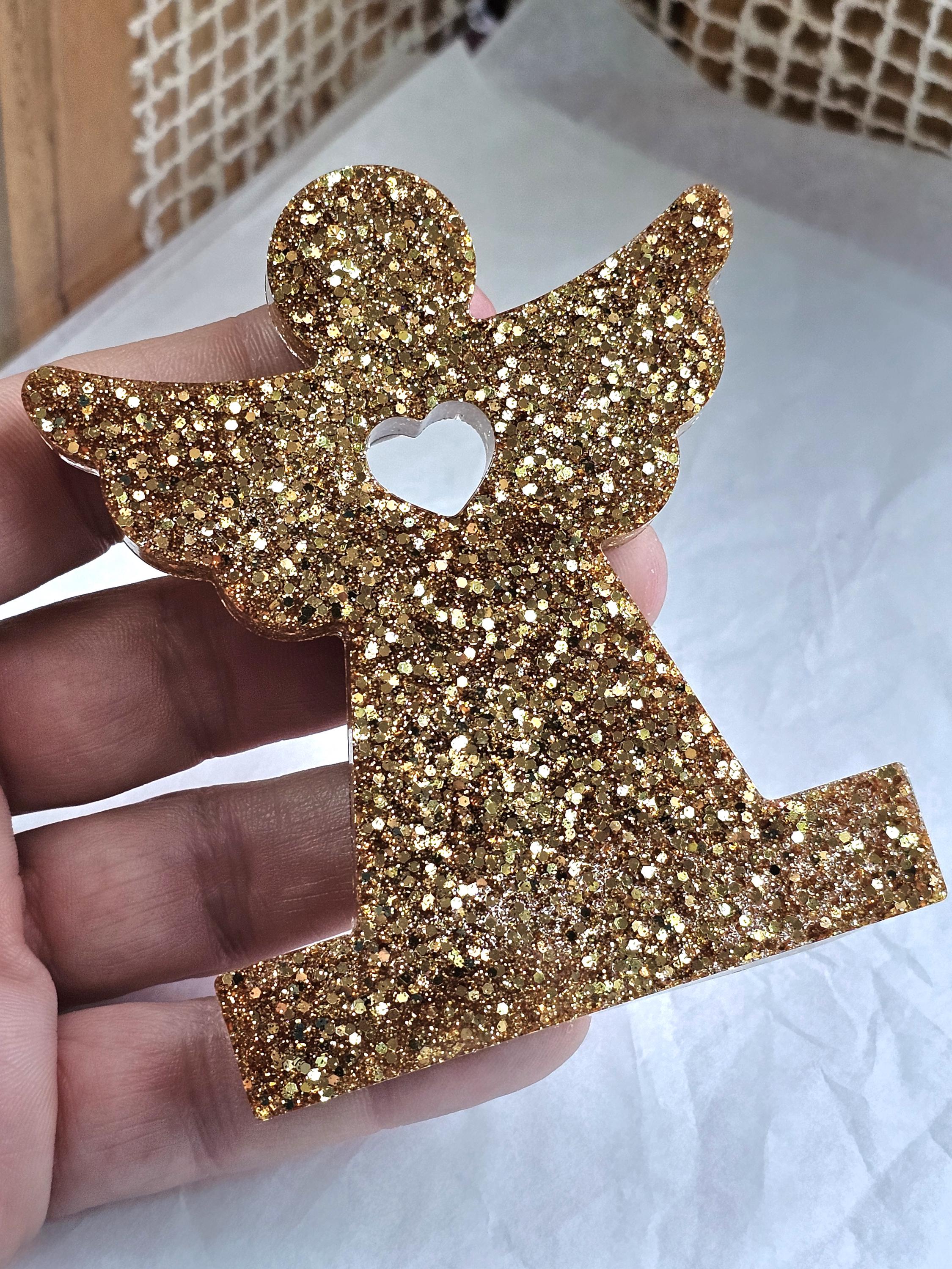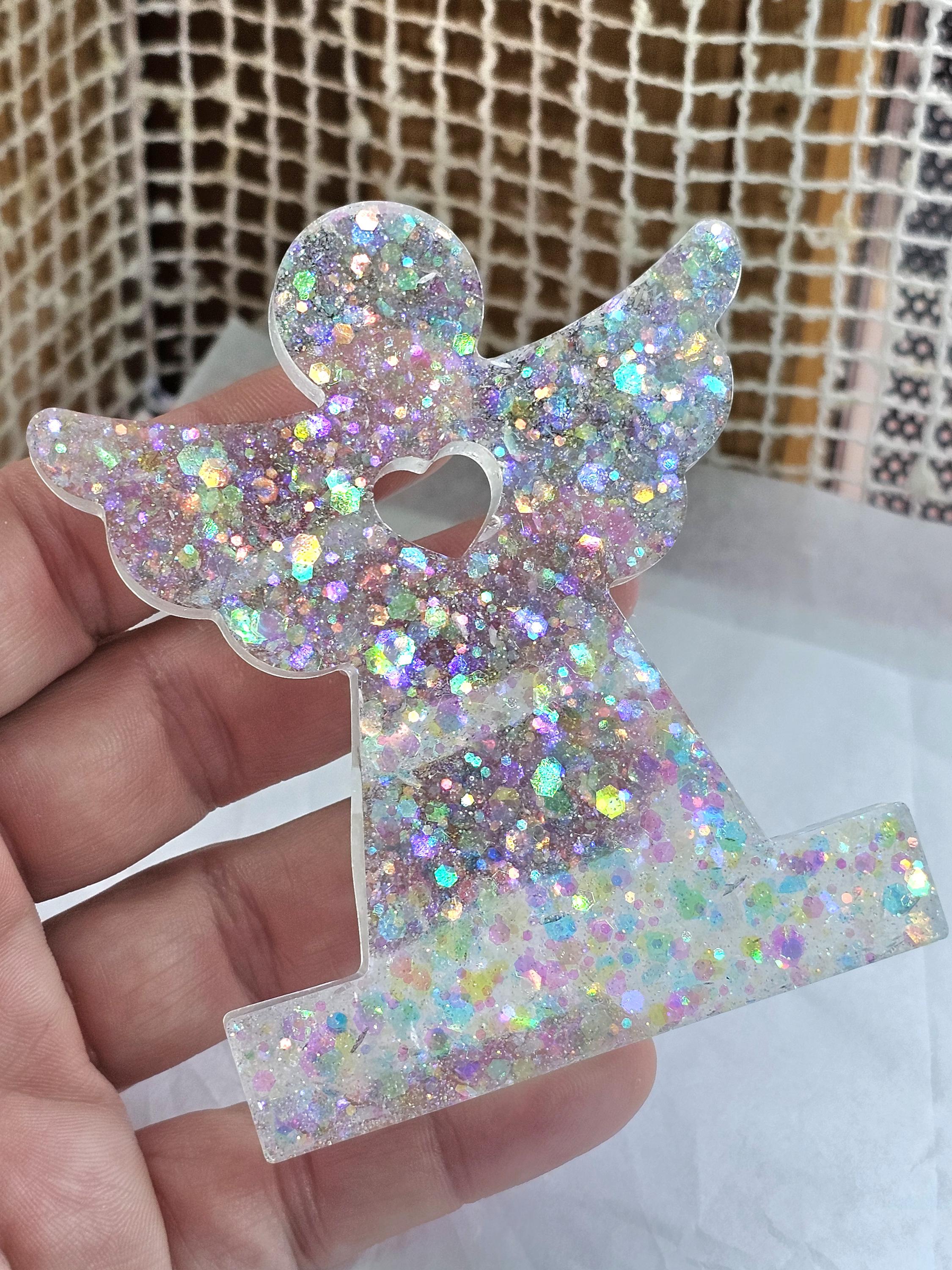Statuette décorative ange gardien coeur en résine & paillettes. Cadeau unique original – Création artisanale et lumineuse Résine-moi Un Chat